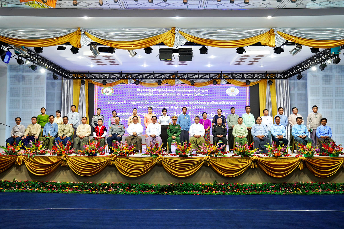 စီးပွားရေးနှင့် ကူးသန်းရောင်းဝယ်ရေးဝန်ကြီးဌာန၊ မကွေးတိုင်းဒေသကြီး စားသုံးသူရေးရာဦးစီး ဌာနမှ ကြီးမှူးကျင်းပသည့် ၂၀၂၃ ခုနှစ် ကမ္ဘာ့စားသုံးသူအခွင့်အရေးများနေ့(World Consumer Rights Day (2023) အထိမ်းအမှတ် အခမ်းအနားကို ယနေ့နံနက် ၉ နာရီက မကွေးမြို့ မြို့တော်ခန်းမ၌ ကျင်းပရာ မကွေးတိုင်းဒေသကြီးဝန်ကြီးချုပ် သီရိပျံချီ ဦးတင့်လွင်နှင့် အဖွဲ့ဝင် ဝန်ကြီးများ၊ တိုင်းဒေသကြီး၊ ခရိုင်၊ မြို့နယ်အဆင့် ဌာနဆိုင်ရာ အကြီးအကဲများ၊ စီးပွားရေးလုပ်ငန်းရှင်များ၊ ဖိတ်ကြားထားသော ဧည့်သည်တော်များနှင့် သင်တန်းသား/သင်တန်းသူများ တက်ရောက်ခဲ့ကြသည်။