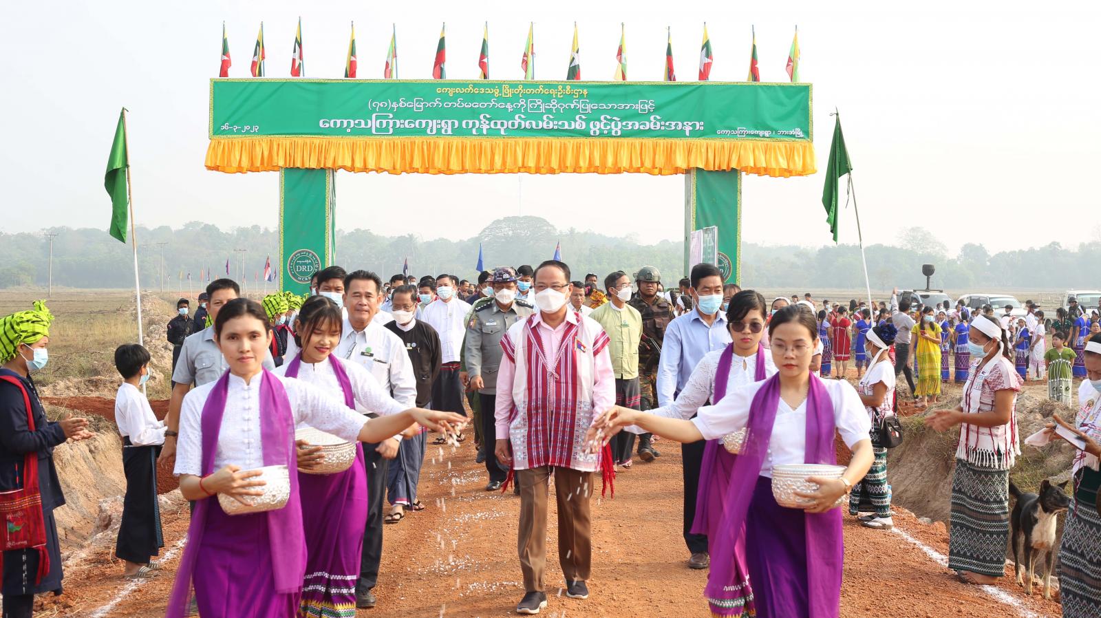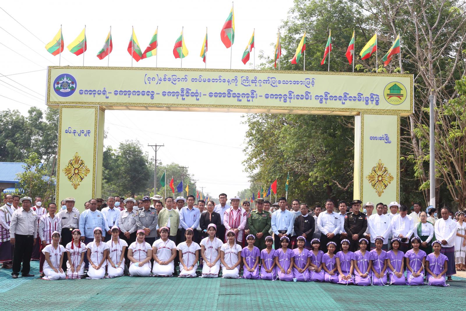 ယင်းနောက် ပြည်နယ်ဝန်ကြီးချုပ်၊ ပြည်နယ်တရားလွှတ်တော်တရားသူကြီးချုပ် ဒေါ်ခင်ဆွေထွန်းနှင့် ပြည်နယ်အစိုးရ အဖွဲ့ဝင်များက ကော့သကြားကျေးရွာ ကုန်ထုတ်လမ်းအား ဖဲကြိုးဖြတ်ဖွင့်လှစ်ပေးကြပြီး လမ်းအားဖြတ်သန်းကြည့်ရှု စစ်ဆေးကြကာ ယဉ်ကျေးမှုအဖွဲ့များအား ဂုဏ်ပြုဆုများပေးအပ်ချီးမြှင့်ကြသည်။