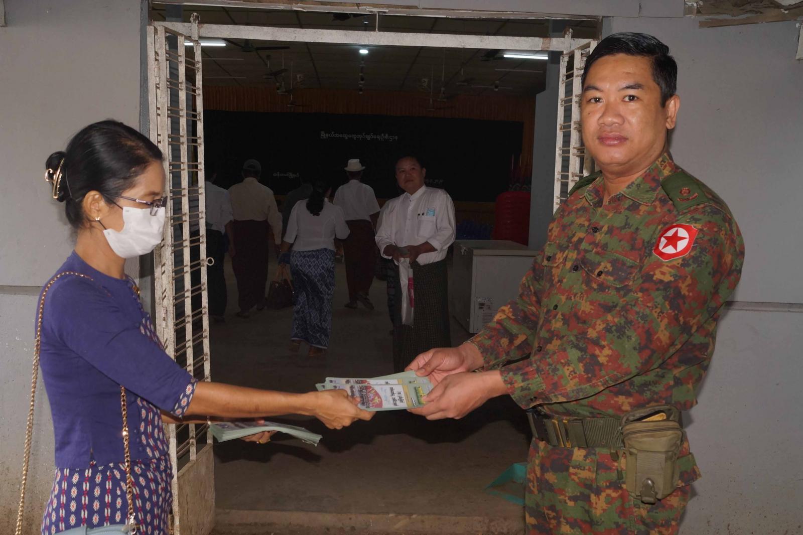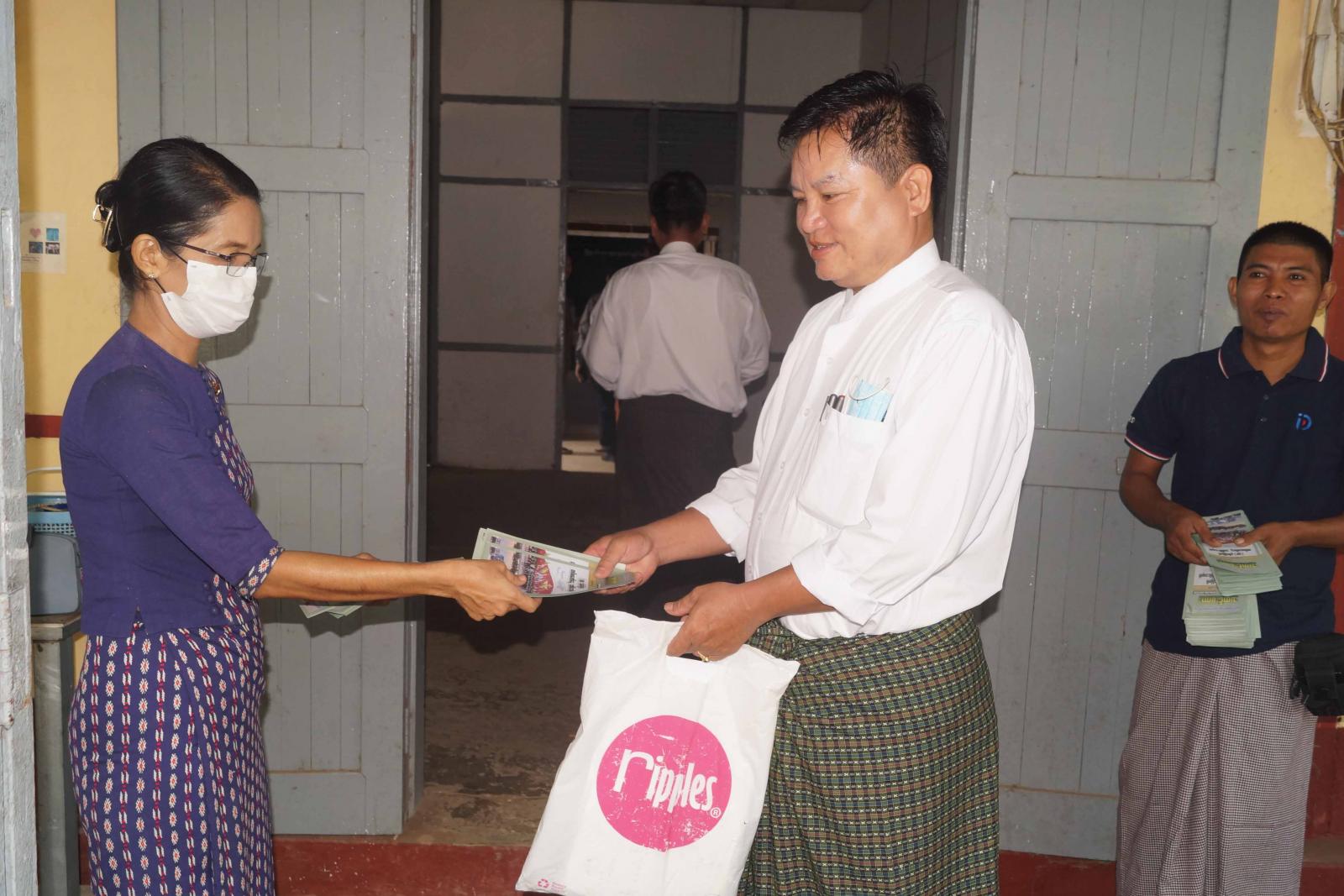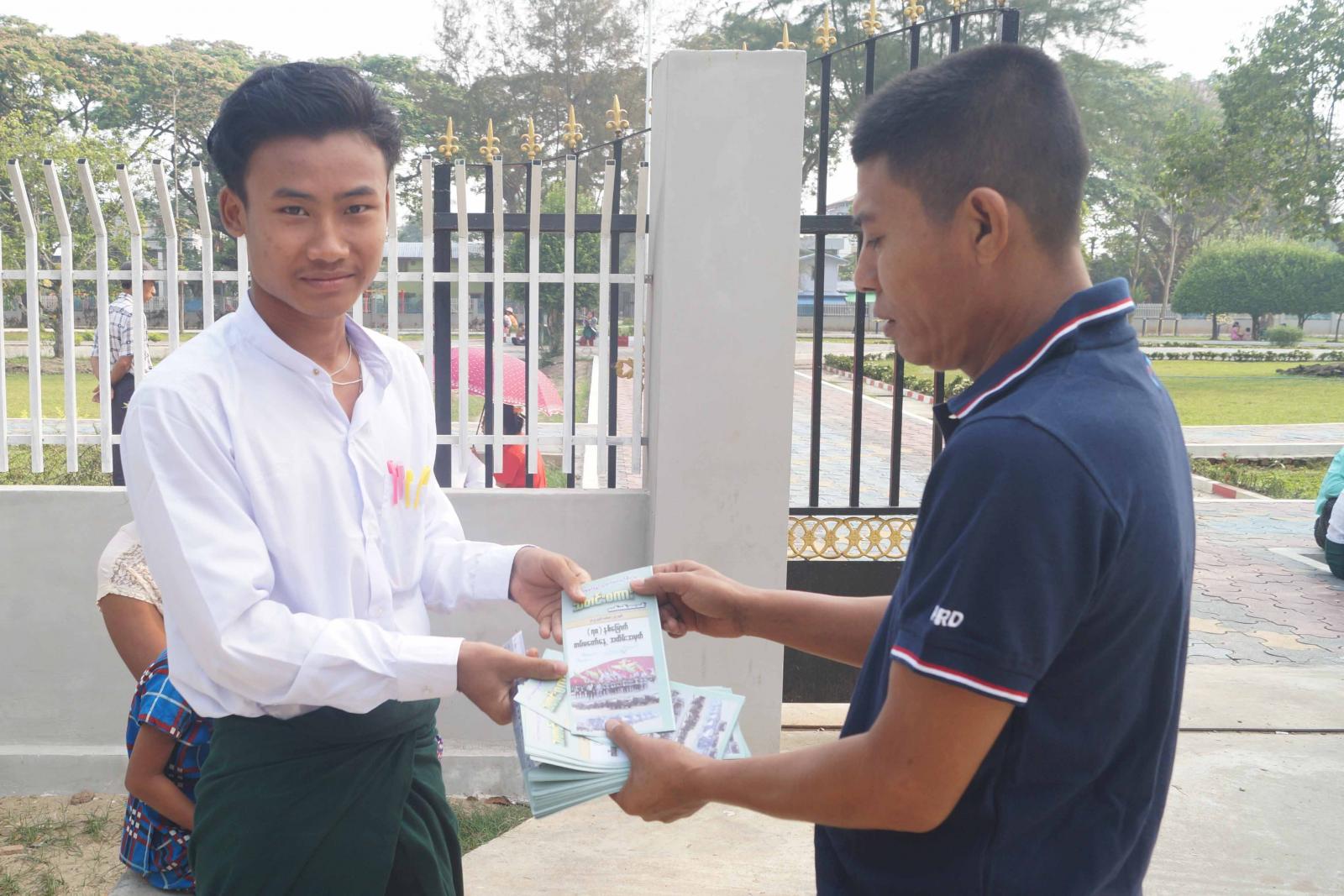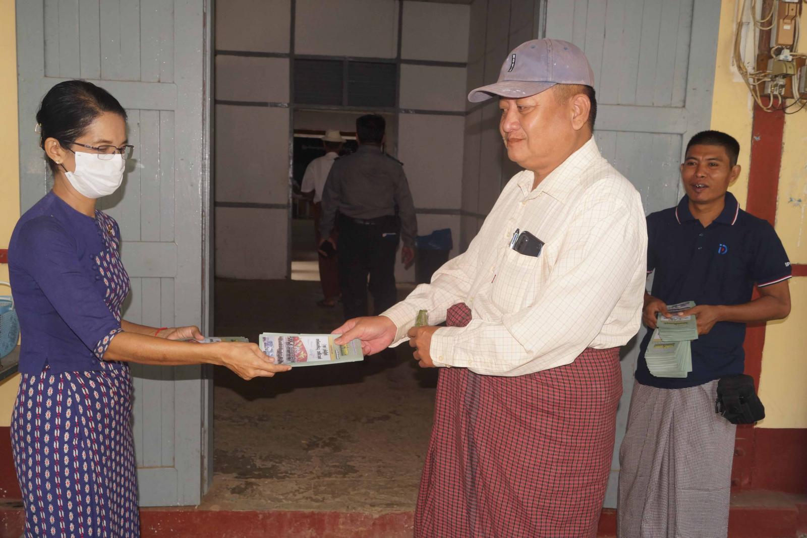 သတင်းစကားလက်ကမ်းစာစောင်များဖြန့်ဝေရာတွင် မြို့နယ်ပြန်ကြားရေးနှင့်ပြည်သူ့ဆက်ဆံရေးဦးစီးဌာန ဦးစီးအရာရှိ ဒေါ်လဲ့လဲ့အေးနှင့်ဝန်ထမ်းများက မြို့နယ်အေထွေထွအုပ်ချုပ်ရေးဦးစီးဌာနရုံးနှင့် အ.ထ.က(ထန်းတပင်) အခြေခံပညာအထက်တန်းကျောင်းတို့တွင် မြို့နယ်စီမံအုပ်ချုပ်ရေးအဖွဲ့ဝင်များ၊ မြို့နယ်အဆင့်ဌာနဆိုင်ရာ တာဝန်ရှိသူများနှင့်ကျောင်းသား၊ ကျောင်းသူကလေးငယ်များအား လက်ကမ်းစာစောင်များကို လက်ဝယ်အရောက်ဖြန့်ဝေပေးခဲ့ကြကြောင်းလည်း သိရသည်။