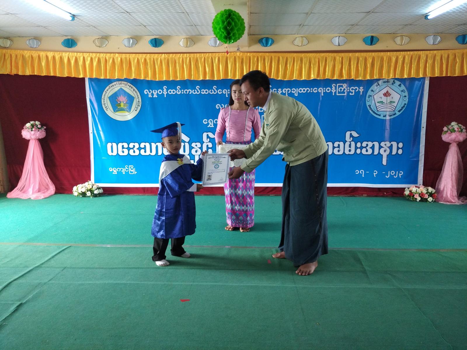 ရှေးဦးစွာ ရွှေကျင်မြို့နယ် လူမှုဝန်ထမ်းရုံး ဦးစီးအရာရှိဒေါ်ပြုံးပြုံးရီက အဖွင့်အမှာစကား ပြောကြားပြီး ရွှေကျင်မူလတန်းကြိုကျောင်းမှ ကျောင်းသား၊ ကျောင်းသူလေးများက အက၊ အလှများဖြင့် ကပြဖျော်ဖြေပေးသည်။ ဆက်လက်ပြီး ရွှေကျင်မူလတန်းကြိုကျောင်းမှ ကျောင်းသား၊ ကျောင်းသူ (၈၅) ဦးတိုအား ကျောင်းဆင်းလက်မှတ်များကို လူမှုဝန်ထမ်းရုံး ဦးစီးအရာရှိ ဒေါ်ပြုံးပြုံးရီ၊ ကျောင်းအုပ်ဆရာမကြီးနှင့် တာဝန်ရှိသူများက ပေးအပ်ချီးမြှင့် ပေးခဲ့သည်။
