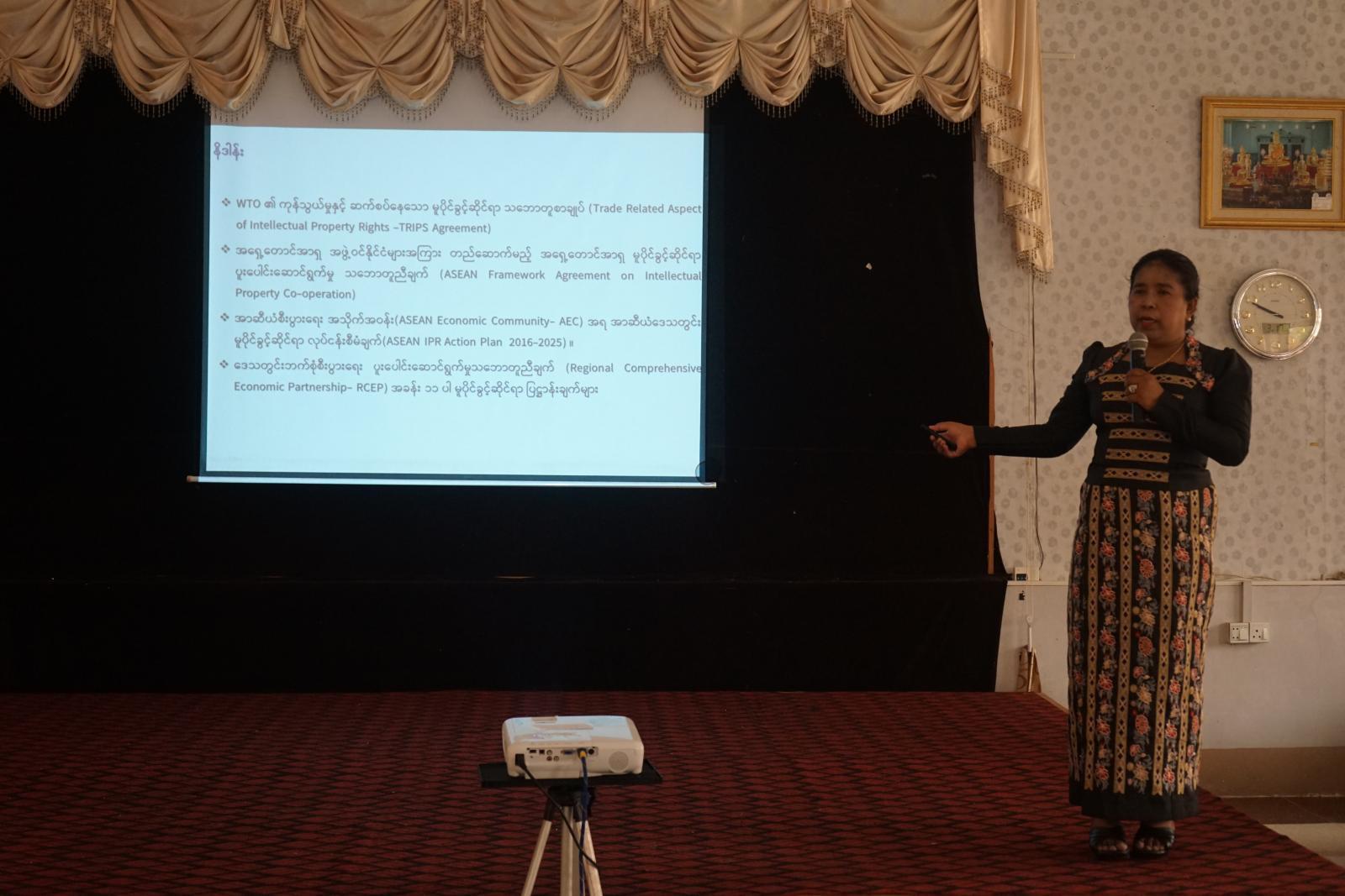 ထို့နောက် မူပိုင်ခွင့်ဦးစီးဌာနမှ ညွှန်ကြားရေးမှူးချုပ် ဒေါက်တာ မိုးမိုးသွယ်မှ ကုန်အမှတ်တံဆိပ်မူပိုင်ခွင့်ဥပဒေ အာဏာသက်ဝင်ခြင်းနှင့်စပ်လျဉ်း၍ ရှင်းလင်းတင်းပြပြီး မှတ်တမ်းတင် ဓာတ်ပုံရိုက်ကူးခဲ့သည်။