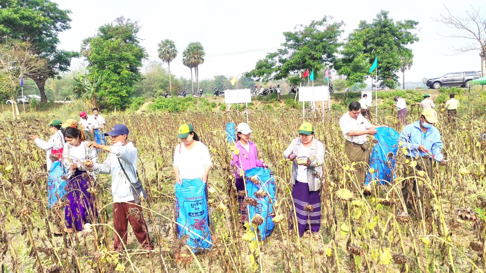 ဧရာဝတီတိုင်းဒေသကြီး၊ ဟင်္သာတခရိုင်၊ ဇလွန်မြို့နယ်တွင် (FS)မျိုးစေ့ထုတ်စိုက်ခင်း ဆောင်းသီးနှံ (နေကြာ) ဆင်းရွှေကြာ-၂ စံကွက် ရိတ်သိမ်းပွဲကို ယနေ့နံနက် ၁၀ နာရီတွင် အုတ်ရှစ်ကွင်း ကျေးရွာအုပ်စု အုတ်ရှစ်ကွင်းကျေးရွာ တောင်သူဦးအောင်အောင်၏ ကွင်းအမှတ် (၁၆၇၇ )၊ ဦးပိုင်အမှတ် (၅၉/၃) လယ်ယာမြေ နှစ်ဧကတွင် ပြုလုပ်ခဲ့သည်။