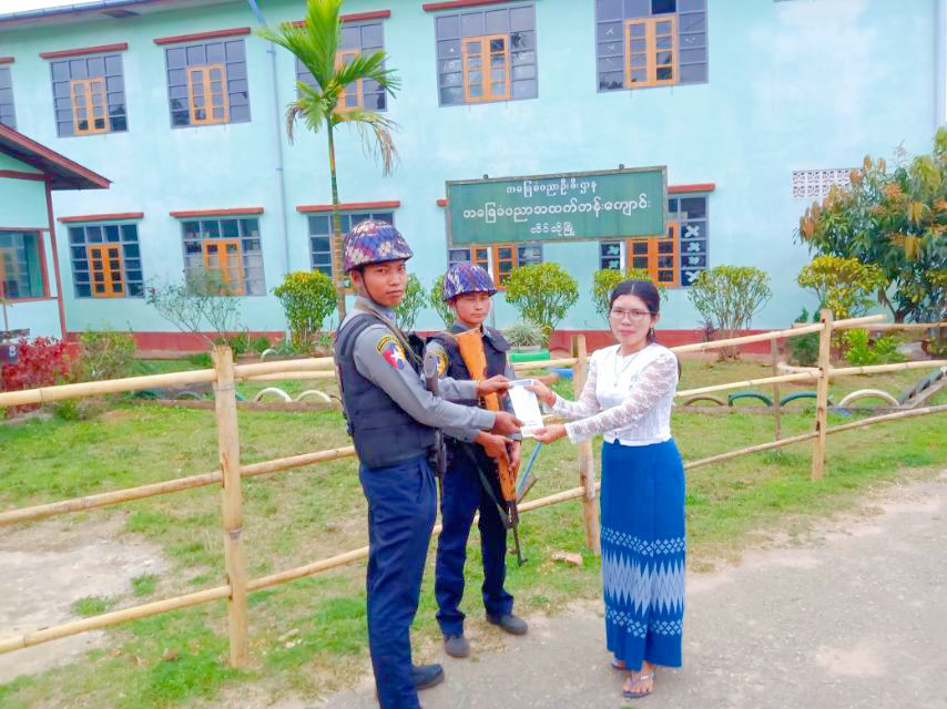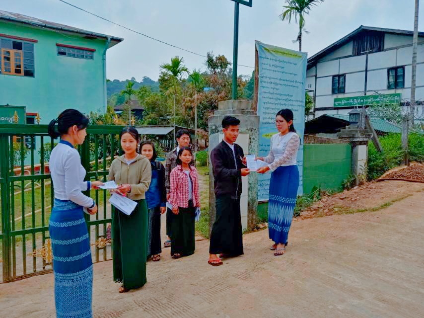 ကရင်ပြည်နယ်၊ သံတောင်ကြီးမြို့နယ်၊ လိပ်သိုမြို့ ပြန်ကြားရေးနှင့်ပြည်သူ့ဆက်ဆံရေးဦးစီးဌာနမှ ဝန်ထမ်းများသည် ပြန်ကြားရေးနှင့်ပြည်သူ့ဆက်ဆံရေးဦးစီး ဌာန ရုံးချုပ်မှ ထုတ်ဝေသည့် (၇၈)နှစ်မြောက် တပ်မတော်နေ့အထိမ်းအမှတ် သတင်းစကားလက်ကမ်းစာစောင်များကို ယနေ့ နေ့လယ် ၁၂ နာရီအချိန်က အမှတ် (၃) ရပ်ကွက်ရှိ အခြေခံပညာအထက်တန်းကျောင်းသို့ သွားရောက်ပြီး တက္ကသိုလ်ဝင်တန်းစာမေးပွဲ ဖြေဆိုပြီးသည့် ကျောင်းသား/ကျောင်းသူများနှင့် လုံခြုံရေး တာဝန်ယူနေကြသော တပ်ဖွဲ့များမှ တာဝန်ရှိသူများအား အသိပညာပေး ဖြန့်ဝေခဲ့ကြောင်း သိရသည်။