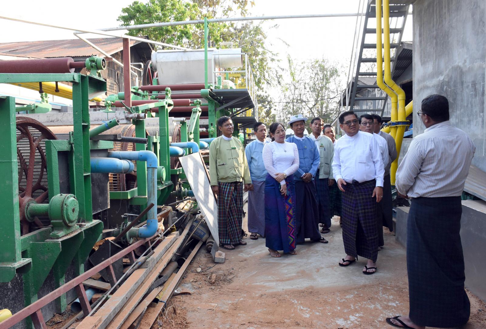 ရှေးဦးစွာ ပြည်နယ်ဝန်ကြီးချုပ်သည် ပြည်နယ်စီးပွားရေးရာဝန်ကြီးဦးမျိုးဆွေ၊ နိုင်ငံ့စီးပွားမြှင့်တင်ရေး ရန်ပုံငွေဖြင့် စိုက်ပျိုး မွေးမြူရေး ဆောင်ရွက်သော ပြည်နယ်အဆင့် ကျေးရွာစီမံကိန်း ကြီးကြပ်မှုကော်မတီအဖွဲ့ဝင်များနှင့် အတူ မြစ်ကြီနားမြို့ စက်မှုဇုန်ရပ်ကွက်ရှိ ဖြိုးဝေဝေ စက္ကူနှင့် စာအုပ်ထုတ် လုပ်ရေးသမဝါယမအသင်း၌ ပြည်နယ်အတွင်း ပထမဦးဆုံးအကြိမ် အဖြစ် နှစ်ဖက်ချော စက္ကူထုတ်လုပ်နိုင်ရေး နိုင်ငံ့စီးပွားမြှင့်တင်ရေးရန်ပုံငွေ မတည်ပေးမှုဖြင့် စက္ကူထုတ်စက်တပ်ဆင် ဆောင်ရွက်နေမှု အခြေအနေများ၊ စွန့်ပစ်ပစ္စည်းကုန်ကြမ်းများဖြင့် ဆောင်ရွက်သွားမည့် အခြေအနေများကို လှည့်လည် ကြည့်ရှုစစ်ဆေးပြီး ပြည်နယ်ဝန်ကြီးချုပ်က နှစ်ဖက်ချောစက္ကူ ထုတ်လုပ်နိုင်ပါက ပြည်နယ်အတွင်း လိုအပ်ချက်ကြီးမား သည့် ကျောင်းသုံး/ရုံးသုံးစာအုပ်များကို ထုတ်လုပ်ဖြန့်ဖြူးနိုင်ရေး လိုအပ်သည်များကို ညှိနှိုင်းပေါင်းစပ်ဆောင်ရွက်ပေးခဲ့ ကြောင်း သိရသည်။