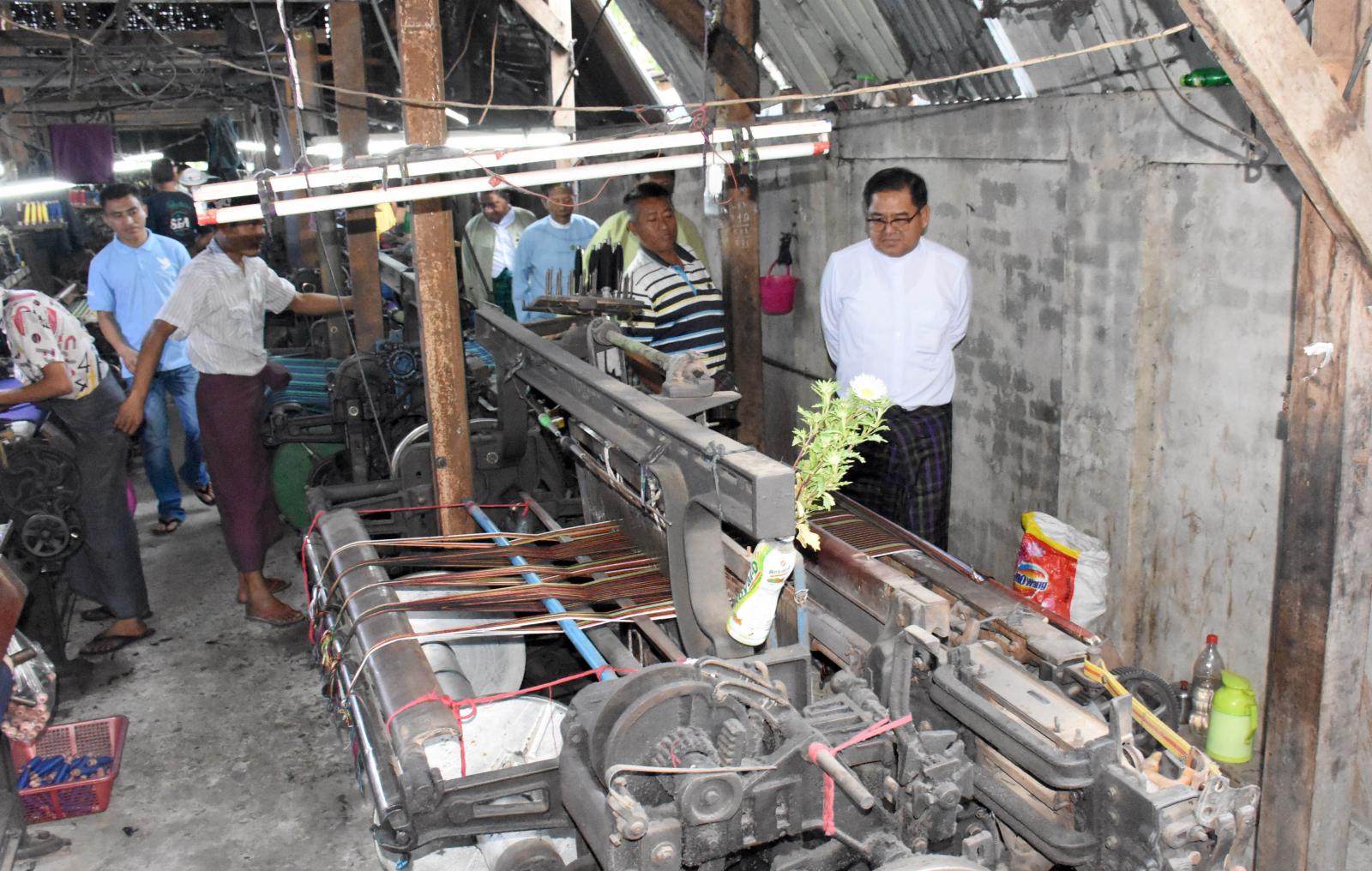 ထိုမှတစ်ဆင့် ပြည်နယ်ဝန်ကြီးချုပ်နှင့် အဖွဲ့ဝင်များသည် ရမ်ပူရပ်ကွက်အတွင်းရှိ ဂျိမ်းဖော့သူ ရိုးရာကချင်ပုဆိုးနှင့် လုံချည်ရောင်းဝယ်ရေးလုပ်ငန်း ဆောင်ရွက်နေသည့် ပိုင်ရှင်ဦးထွန်းနိုင်၏ နေအိမ်၌ ရိုးရာအဝတ်အထည်များအား လက်ရက်ကန်း၊ စက်ရက်ကန်းများဖြင့် ရက်လုပ်နေမှု အခြေအနေများကို ရက်ကန်းရုံအတွင်း လှည့်လည်ကြည့်ရှုစစ်ဆေးခဲ့ ကြပြီး ချည်မျှင်ကုန်ကြမ်းရရှိမှု အခြေအနေများ၊ စက်ရက်ကန်းဖြစ်သည့်အတွက် လျှပ်စစ်ဓာတ်အား ရရှိမှုအခြေအနေ များနှင့် ဈေးကွက်တင်ပို့နိုင်မှု အခြေအနေများကို မေးမြန်းဆွေးနွေးခဲ့ကြကာ ပြည်နယ်ဝန်ကြီးချုပ်က ပြည်နယ်၏ စီးပွားမြှင့်တင်ရေးအတွက် ဒေသတွင်း ကုန်ထုတ်လုပ်မှုများ တိုးတက်မြင့်မားလာစေရေး MSME လုပ်ငန်းရှင်များ အနေဖြင့် ဌာနဆိုင်ရာများကို ချိတ်ဆက်၍ နည်းပညာနှင့် ရန်ပုံငွေလိုအပ်ချက် များ ပံ့ပိုးကူညီပေးနိုင်သည့် အခြေအနေတို့အား ပေါင်းစပ်ညှိနှိုင်း၍ ဆွေးနွေးဆောင်ရွက်ခဲ့ကြောင်း သိရသည်။