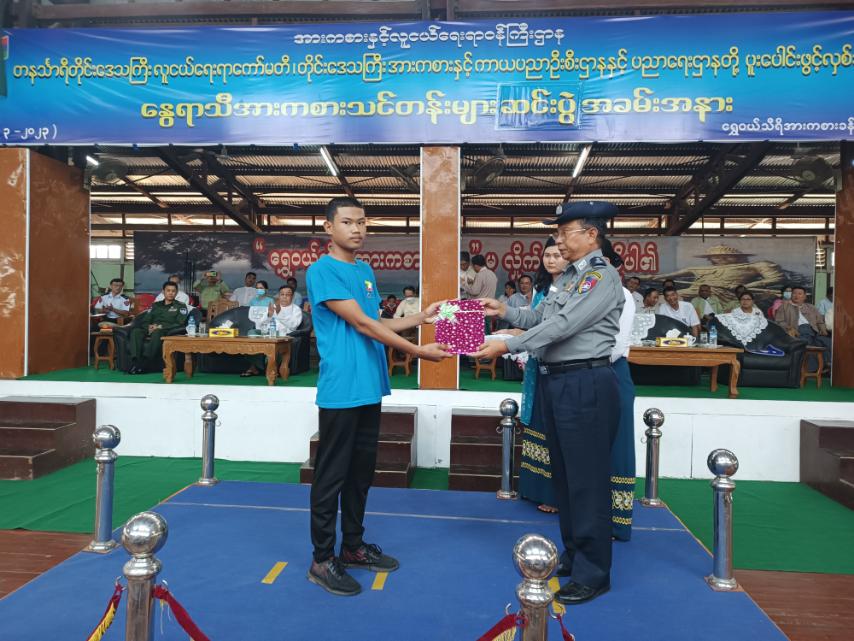 တနင်္သာရီတိုင်းဒေသကြီး လူငယ်ရေးရာကော်မတီ၊ အားကစားနှင့် ကာယပညာဦးစီးဌာနနှင့် ပညာရေးဌာနတို့ ပူးပေါင်း ဖွင့်လှစ်သည့် နွေရာသီအားကစားသင်တန်းများ ဆင်းပွဲအခမ်းအနားကို ယမန်နေ့ ညနေ ၃ နာရီခွဲက ထားဝယ်မြို့၊ ရွှေဝယ်သီရိ အားကစားခန်းမ၌ ကျင်းပသည်။