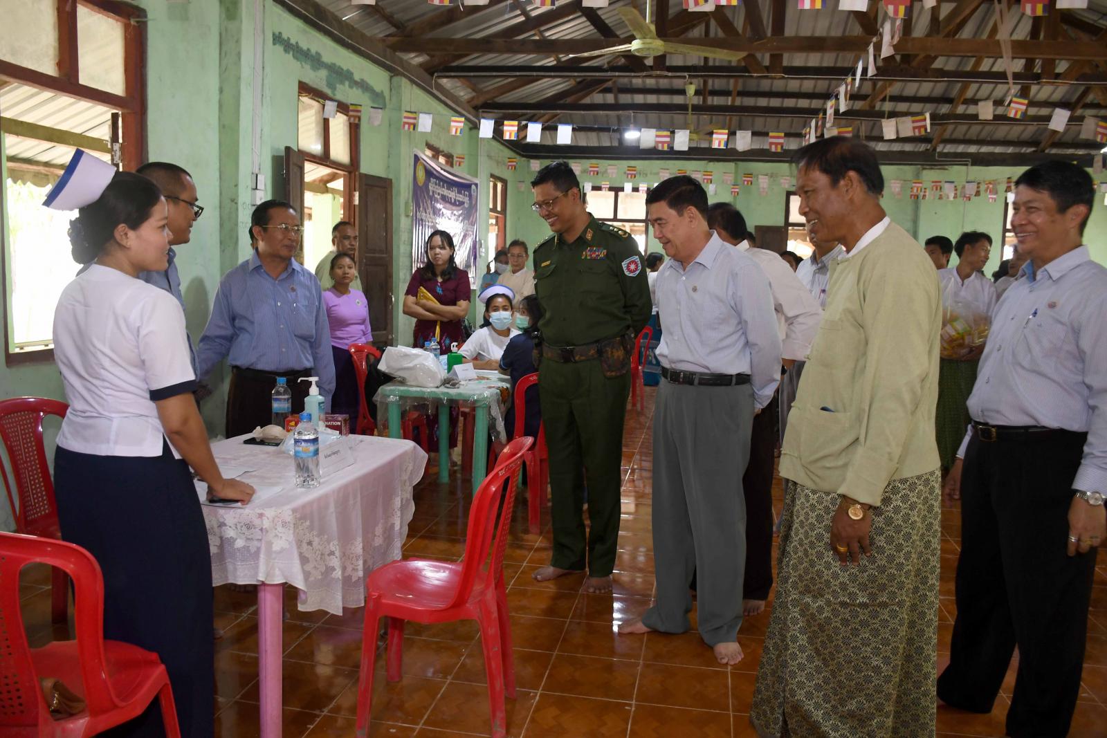 ရခိုင်ပြည်နယ်ဝန်ကြီးချုပ် ဦးထိန်လင်းသည် ပြည်နယ်ဝန်ကြီးများ၊ ဌာနဆိုင်ရာတာဝန်ရှိသူများနှင့်အတူ ယနေ့နံနက်ပိုင်းက စစ်တွေမြို့နယ် ဝါဘိုကျေးရွာ၌ စစ်တွေမြို့၊ ခုတင် ၅၀၀ ဆံ့ အထွေထွေ ရောဂါကု ဆေးရုံကြီးမှ အထူးကုဆရာဝန်ကြီးများက အခမဲ့ကွင်းဆင်းဆေးကုသနေမှုအား ကြည့်ရှုအားပေးပြီး ဒေသတွင်းစိုက်ပျိုးရေး၊ မွေးမြူရေး၊ ကုန်ထုတ်လုပ်မှုလုပ်ငန်းများ ရာနှုန်းပြည့် ဆောင်ရွက်နိုင်ရေးနှင့် ဒေသဖွံ့ဖြိုးရေးလုပ်ငန်းများဆောင်ရွက်နိုင်ရေး ဒေသခံပြည်သူများနှင့်တွေ့ဆုံကြသည်။