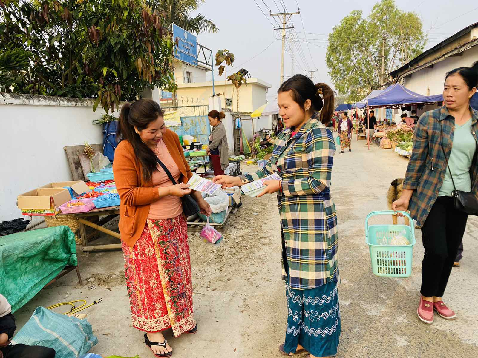 ပြန်ကြားရေးနှင့်ပြည်သူ့ဆက်ဆံရေးဦးစီးဌာနမှ အခမဲ့ထုတ်ဝေခဲ့သည့် ၂၀၂၃ ခုနှစ်၊ မတ်လ(၂၇) ရက်နေ့တွင် ကျရောက်မည့် (၇၈) နှစ်မြောက် တပ်မတော်နေ့အထိမ်းအမှတ် သတင်းစကား လက်ကမ်းစာစောင်များကို ရှမ်းပြည်နယ်(မြောက်ပိုင်း)၊မူဆယ်ခရိုင်၊မန့်ဟီးရိုးမြို့၌ ယမန်နေ့နံနက် (၉း၀၀)နာရီအချိန်က ငါးရက်တစ်ကြိမ်ဈေးတွင် ဈေးရောင်းဈေးဝယ်များနှင့် လမ်းသွားလမ်းလာ ဒေသခံပြည်သူများကို လက်ဝယ်အရောက် ဖြန့်ဝေခဲ့ပါသည်။