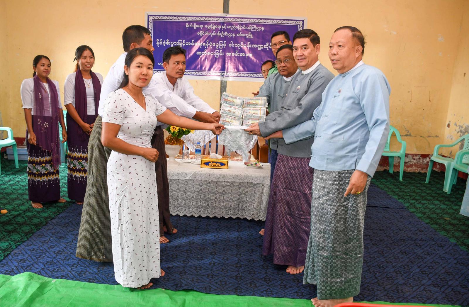 ထို့နောက် ပြည်နယ်ဝန်ကြီးချုပ်နှင့် ပြည်နယ်ဝန်ကြီးများက နိုင်ငံ့စီးပွားမြှင့်တင်ရေး ချေးငွေအား ပလ္လင်ပြင်ကျေးရွာ စီမံကိန်းကြီးကြပ်မှုကော်မတီထံသို့ လွှဲပြောင်းပေးအပ်ကြရာ ကျေးရွာစီမံကိန်း ကြီးကြပ်မှုကော်မတီအဖွဲ့ဝင် တစ်ဦးက ကျေးဇူးတင်စကားပြန်လည်ပြောကြားခဲ့သည်။