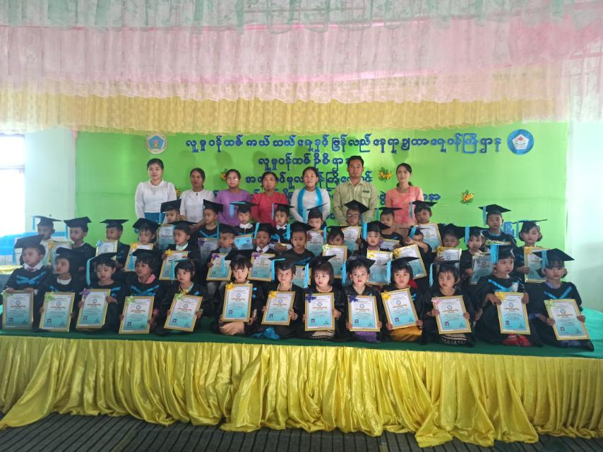 ရှေးဦးစွာ တိုင်းဒေသကြီး လူမှု၀န်ထမ်းဦးစီးဌာန၊ ဒုတိယညွှန်ကြားရေးမှူးက အဖွင့်အမှာစကားပြောကြားပြီး၊ အထောင်မြို့ အုပ်ချုပ်ရေးမှူးမှ အမှာစကားပြောကြားသည်။ ထို့နောက် တာ၀န်ရှိသူများက မူလတန်းကြို ကျောင်းဆင်းမည့် အကြီးဆင့် ကျောင်းသား၊ ကျောင်းသူ (၃၆)ဦးအား ကျောင်းဆင်းလက်မှတ်များ ပေးအပ်ချီးမြှင့်ခဲ့ပြီး အမှတ်တရ မှတ်တမ်း ဓာတ်ပုံများ ရိုက်ကူးခဲ့ကြသည်။