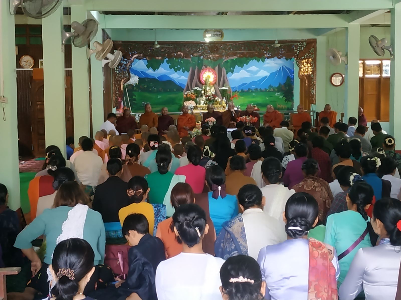 ထို့နောက် သံဃာ့ဒါနဆွမ်းဆန်စိမ်းလောင်းလှူပွဲကို ပြုလုပ်ရာ မြတ်စွာဘုရားအပါအဝင် သံဃာ့တော်၊ သာမဏေ၊ သီလရှင်စုစုပေါင်း (၁၀၀) ပါးအား ဌာနဆိုင်ရာဝန်ထမ်းမိသားစုများနှင့် မြို့နေပြည်သူလူထုတို့က လှူဖွယ်ဝတ္ထုအစုစုတို့ကို လောင်းလှူခဲ့ကြသည်။