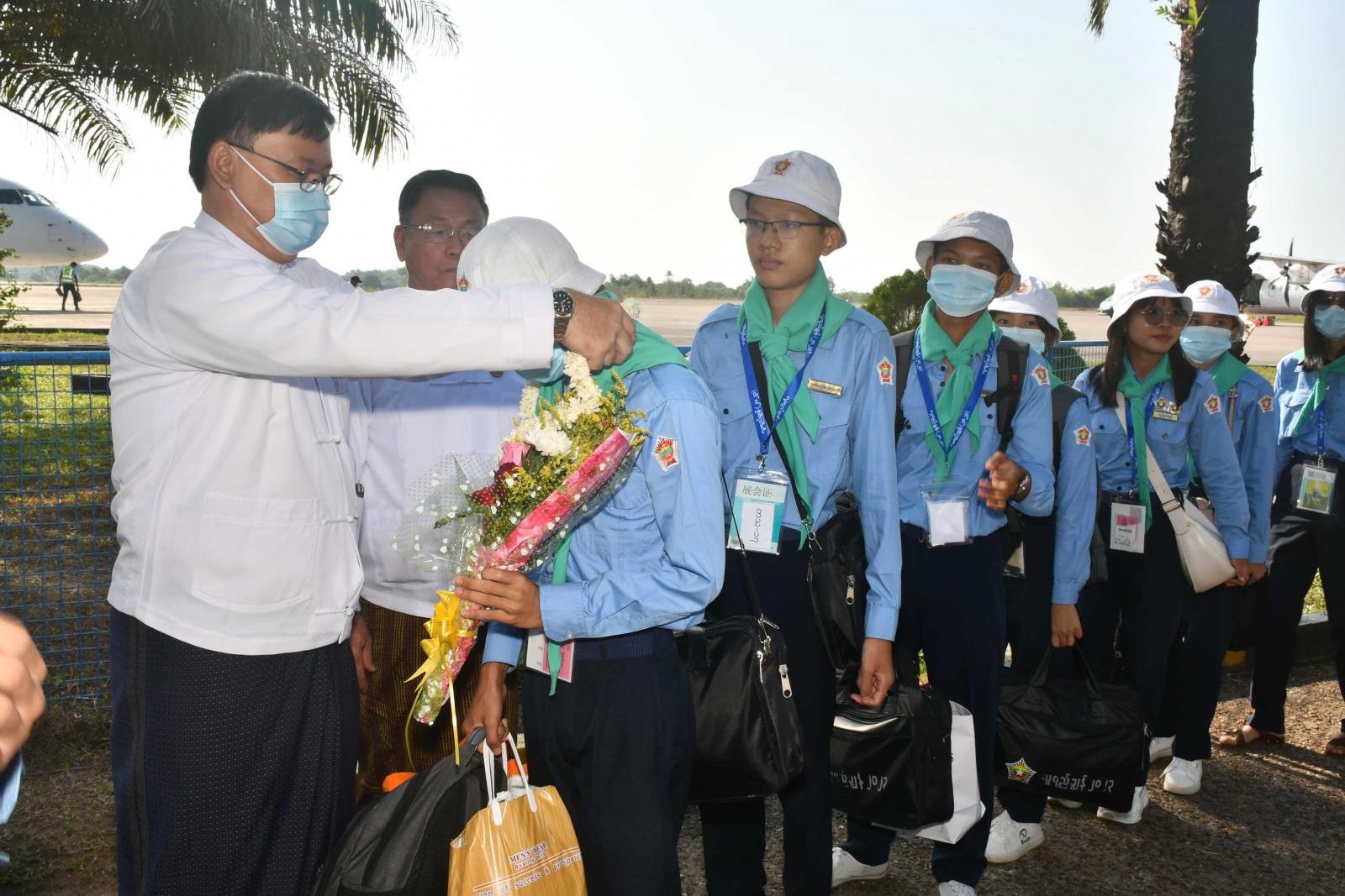 ဂုဏ်ပြုကြိုဆိုရာတွင် လူရည်ချွန်မောင်မယ်များကို တိုင်းဒေသကြီး စီးပွားရေးရာဝန်ကြီး ဦးမောင်ကြီး၊ တိုင်းရင်းသားရေးရာဝန်ကြီး စောမာတင်လူသာ၊ ဌာနဆိုင်ရာ တာဝန်ရှိသူများ၊ ခရိုင်ပညာရေးမှူး၊ မြို့နယ်ပညာရေးမှူး၊ ကျောင်းအုပ်ကြီးများ၊ ဆရာ/မများ၊ ကျောင်းသား/သူများနှင့် မိဘအုပ်ထိန်းသူများမှ ဂုဏ်ပြုပန်းကုံး၊ ပန်းစည်းများဖြင့် ဂုဏ်ပြုကြိုဆိုခဲ့ကြပြီး လေဆိပ်ခန်းမဆောင်တွင် လူရည်ချွန်မောင်မယ်များအား တိုင်းဒေသကြီး စီးပွားရေးရာဝန်ကြီးက ဂုဏ်ပြုအမှာစကားပြောကြားသည်။