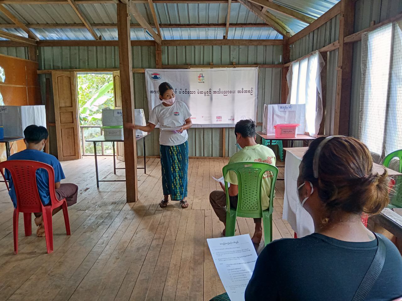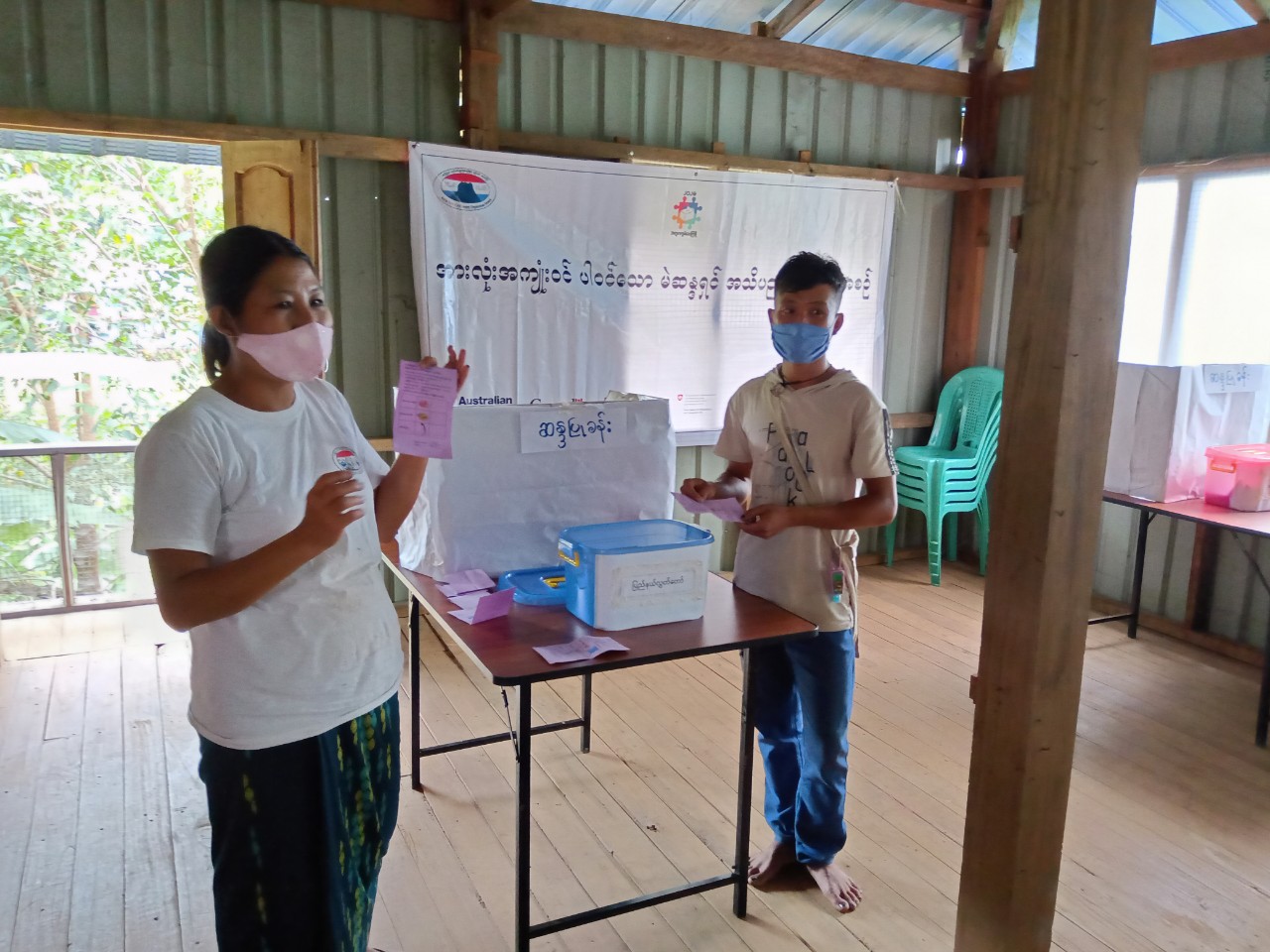 ရှေးဦးစွာ လိပ်သိုမြို့ လူမှုထာ လူမှုအထောက်အကူပြု အဖွဲ့၏ဥက္ကဋ္ဌ နော်အဲလစ္စဘက်ချောက ပယ်မဲနှင့် ခိုင်လုံမဲအကြောင်း၊ မဲထည့်ပုံ ထည့်နည်းလမ်းညွှန်အား ရှင်းလင်းဆွေးနွေးပြီး မဲဆန္ဒရှင်တစ်ဦးသည် မဲရုံသို့ ၀င်ရောက်စာရင်း ပေးသွင်းသည်မှစတင်၍ မဲလက်မှတ် ထုတ်ယူခြင်းအား ဆန္ဒပြုမဲထည့်ခြင်းနှင့် မဲရေတွက်ခြင်းတို့ကို လက်တွေ့သရုပ်ပြ ပြုလုပ်ခဲ့ကြ ကြောင်း သိရသည်။