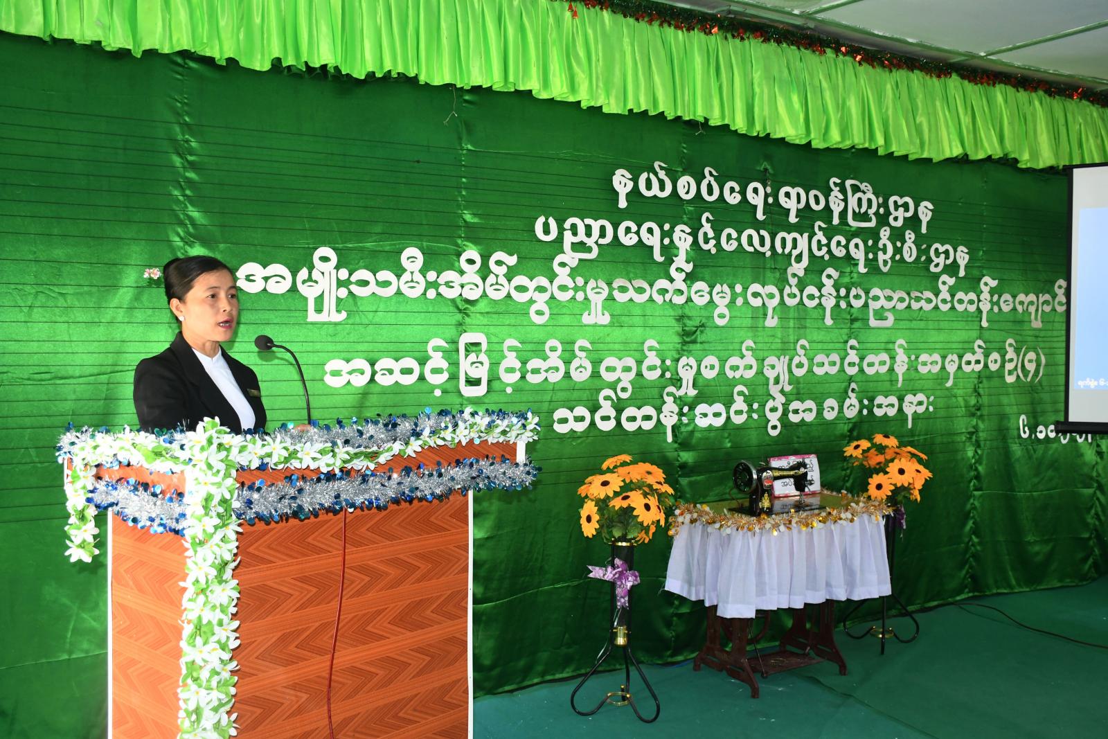 အခမ်းအနားတွင် ခရိုင်စီမံအုပ်ချုပ်ရေးအဖွဲ့ ဥက္ကဋ္ဌ ဦးနေဦး ကအမှာစကားပြောကြားရာတွင် နယ်စပ်ဒေသ ဖွံ့ဖြိုးတိုးတက်ရေး အတွက်အမျိုးသမီးအိမ်တွင်းမှုသက်မွေးပညာ သင်တန်းကျောင်းဖွင့်လှစ်ပေးထားခြင်းအားဖြင့် နယ်စပ်ဒေသ တိုင်းရင်းသူများအနေဖြင့် ကိုယ်ပိုင်စီးပွားရေးများ ဆောင်ရွက်ကာ မိမိဘဝ၊ မိမိဒေသဖွံ့ ဖြိုးတိုးတက်ရေးကို လက်တွေ့ကျကျဆောင်နိုင်မှာဖြစ်ကြောင်း၊ ကျေးလက်နေ ပြည်သူများ၏ အလုပ်အကိုင်အခွင့်အလမ်းများဖန်တီးပေးနိုင်ရေး၊ မိသားစုဝင်ငွေကိုတစ်ဘက်တစ်လမ်းမှ သမာအာဇီဝကျစွာ ရှာဖွေနိုင်ကြောင်း ၊ တစ်ဦးချင်းဝင်ငွေ တိုးပွားလာခြင်းဖြင့် ဆင်းရဲ နွမ်းပါးမှု လျော့ချစေနိုင်ရေး၊ လုပ်ငန်းစဉ်များအတွက် အထောက်အကူပြုနိုင်စေနိုင်ရန် စသည့် ရည်ရွယ်ချက်များဖြင့် ဖွင့်လှစ်ပေးခဲ့ခြင်းဖြစ်ကြောင်း ရှင်းလင်းပြောကြားခဲ့သည်။ ထို့နောက် အမျိုးသမီးအိမ်တွင်းမှု သက်မွေးပညာသင်တန်းကျောင်းကျောင်းအုပ်ဆရာမကြီး ဒေါ်နီလာကြည်က သင်တန်းဖွင့်လှစ်ရခြင်းနှင့်သင်တန်းကျောင်းဆိုင်ရာများအား ရှင်းလင်းတင်ပြခဲ့သည်။