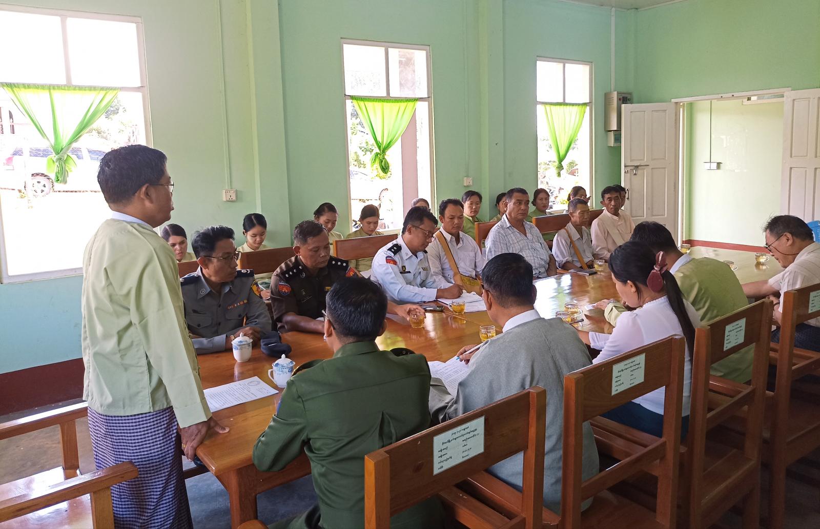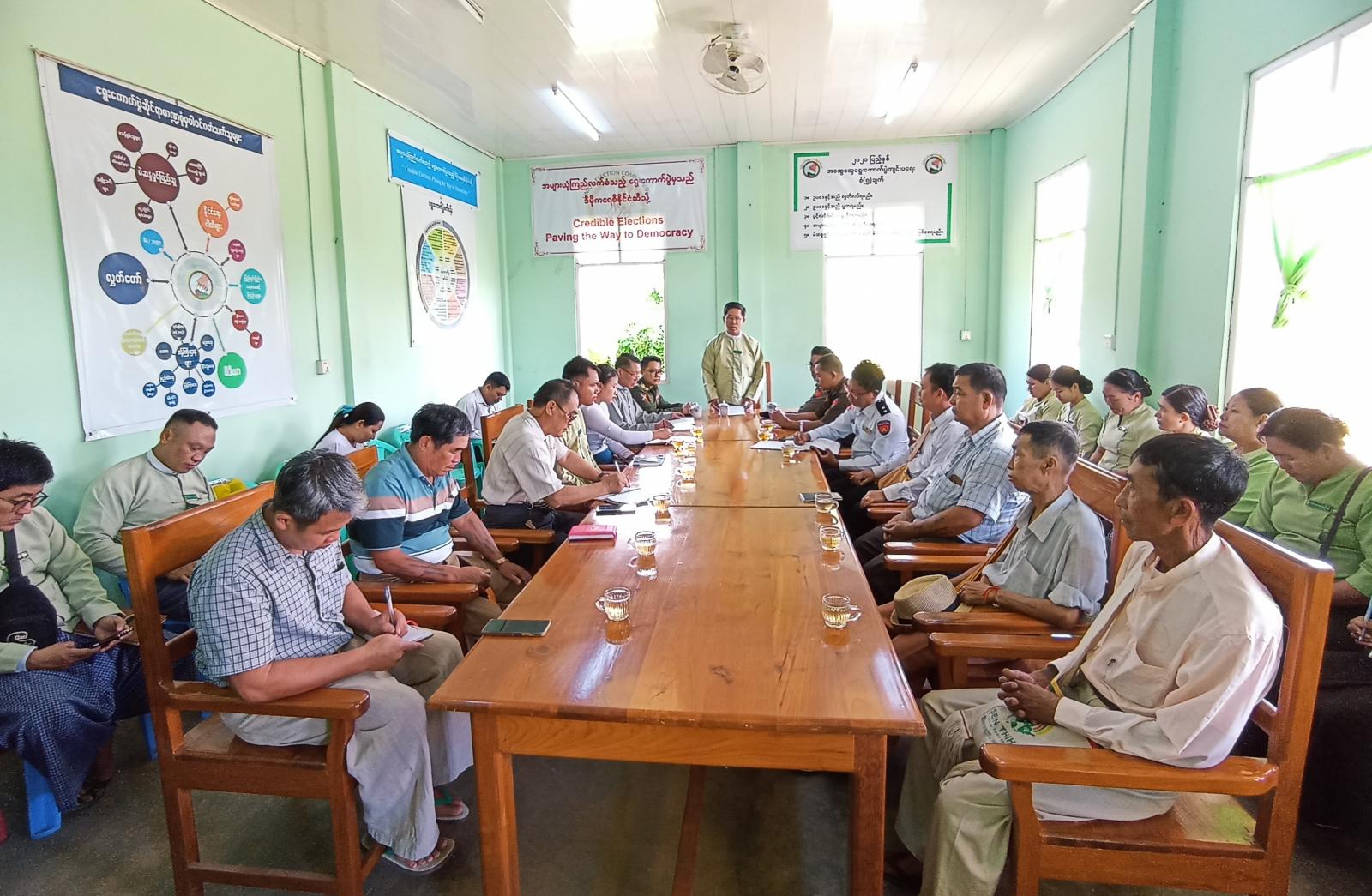 ဦးစွာ မြို့နယ်စီမံအုပ်ချုပ်ရေးအဖွဲ့ဉက္ကဌ ဦးစိုးမင်းအောင်က မြို့နယ်ရွေးကောက်ပွဲကော်မရှင်အဖွဲ့ခွဲ၊ အထွေထွေအုပ်ချုပ်ရေးဦးစီးဌာနနှင့် လူဝင်မှုကြီးကြပ်ရေးနှင့်အမျိုးသား မှတ်ပုံတင်ဦးစီးဌာနတို့ ပူးပေါင်း၍ ပါတီဝင်အင်အားစာရင်းများ မှန်ကန်မှုမရှိစေရေးနှင့် မြေပြင်တွင် အမှန်တကယ်နေထိုင်ပြီး နိုင်ငံသားစိစစ်ရေးကတ်ပြားတစ်ခုတည်းကိုသာ ကိုင်ဆောင်ထားသူ ဖြစ်ရန်လိုကြောင်း၊ စိစစ်မှုများကို သတ်မှတ်ရက်အတွင်းအချိန်မီပြီးစီးနိုင်ရေး ဝိုင်းဝန်းဆောင်ရွက်ကြစေလိုကြောင်း ပြောကြားသည်။