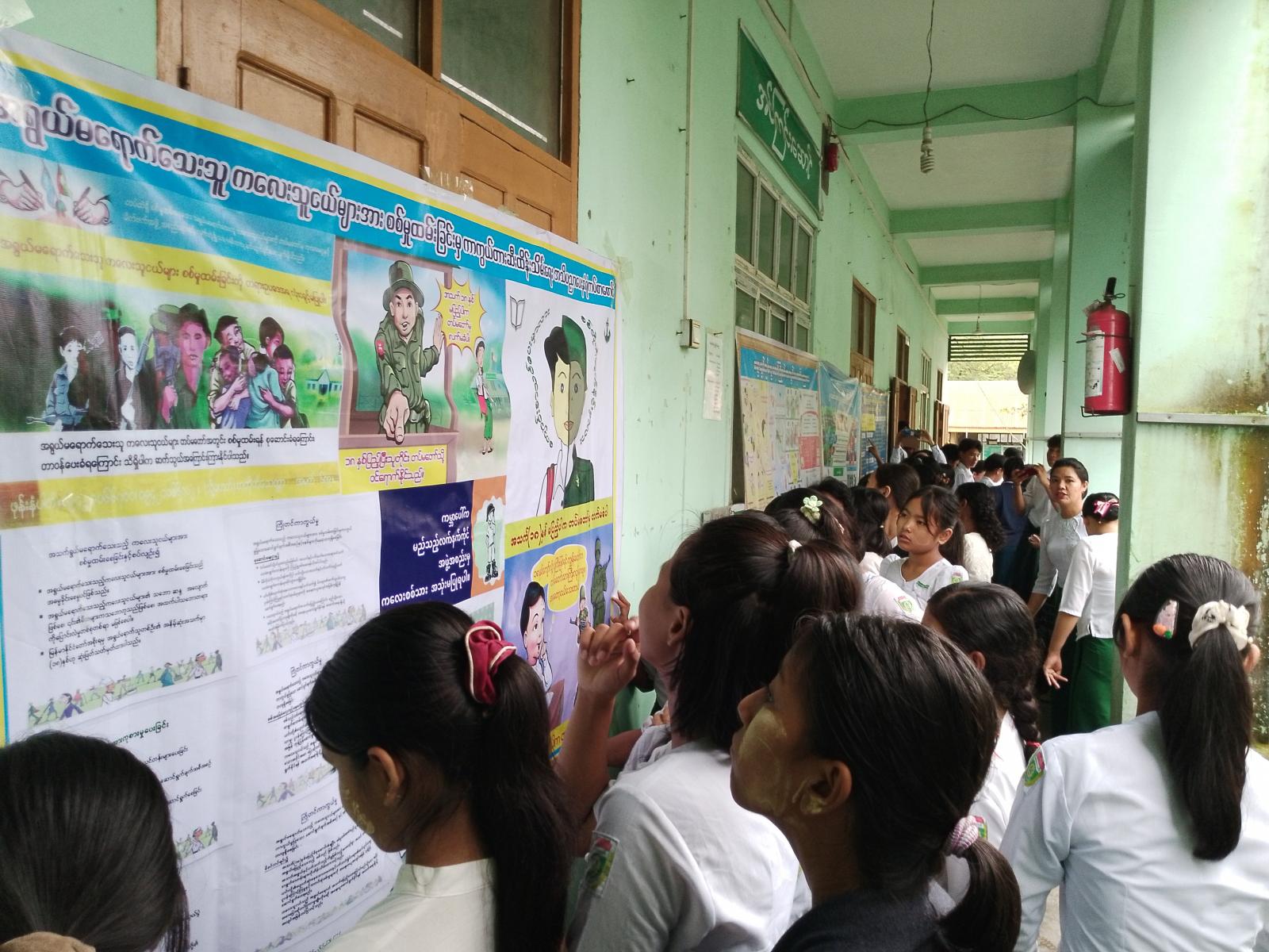 ထို့နောက်ဟောပြောပွဲတက်ရောက်လာကြသော ကျောင်းသား / ကျောင်းသူများက မြို့နယ်ပြန်ကြားရေးနှင့်ပြည်သူ့ဆက်ဆံရေးဦးစီးဌာနမှ ခင်းကျင်းပြသထားသော လူကုန်ကူးမှုအသိပညာပေး၊ မူးယစ်ဆေးဝါးအန္တရာယ်အသိပညာပေး ကလေးအလုပ်သမားပပျောက်ရေးအသိပညာပေးစသည့် အသိပညာပေးနံရံကပ်စာစောင်များနှင့် စာအုပ်စာစောင်များအား စိတ်ပါဝင်စားစွာ လေ့လာကြည့်ရှုခဲ့ကြကြောင်းနှင့် ဟောပြောပွဲသို့ မြို့နယ်ပြန်ကြားရေးနှင့်ပြည်သူ့ဆက်ဆံရေးဦးစီးဌာန ဦးစီးအရာရှိနှင့်ဝန်ထမ်းများ၊ အ.လ.က(ခွဲ)မ(၁)ကျောင်းအုပ်ဆရာမကြီးဒေါ်ခင်ထွေးမြင့်နှင့် ဆရာမများ၊ ကျောင်းသား/ကျောင်းသူများ စုစုပေါင်း (၁၅၀)ဦးတက်ရောက်ကြာင်း သိရသည်။