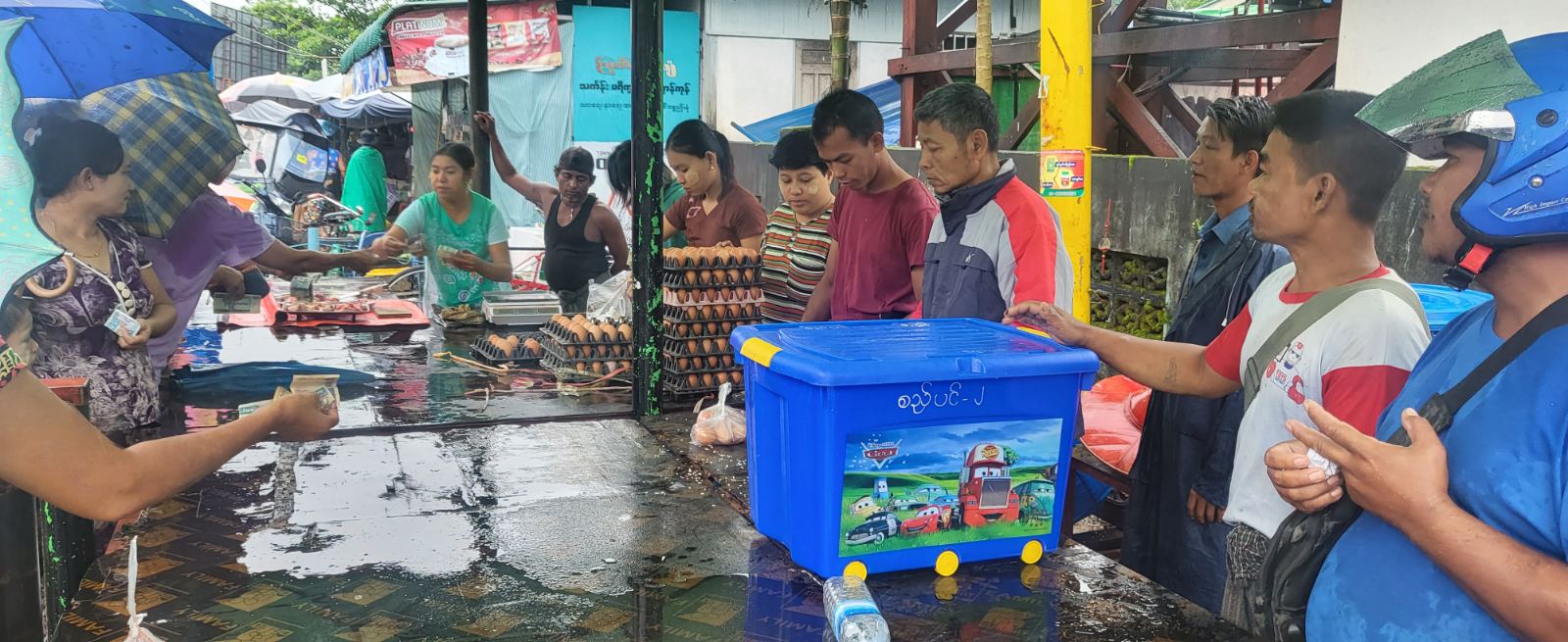 ထိုသို့ရောင်းချရာတွင် မြို့နယ်စီမံအုပ်ချုပ်ရေးအဖွဲ့၏ ဦးဆောင်မှုဖြင့် အခြေခံစားသောက်ကုန်စည်များဖြစ်သည့် အမဲသားတစ်ပိသာ(၁၅၀၀၀)ကျပ်၊ ဝက်သားတစ်ပိသာ(၁၅၀၀၀)ကျပ်၊ ဆန်(၁)ပြည် (၂၅၀၀)ကျပ်၊ ဆီတစ်ပိသာ(၄၈၀၀)ကျပ်၊ ကြက်ဥ(၅)လုံး(၁၂၀၀)ကျပ် စသည်တို့ကို စျေးနှုန်းချိုသာစွာဖြင့် ရောင်းချပေးခဲ့ရာ အများပြည်သူများ ဝယ်ယူအားပေးခဲ့ကြောင်း သိရသည်။