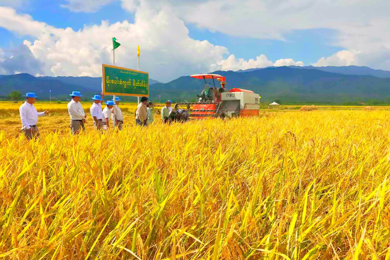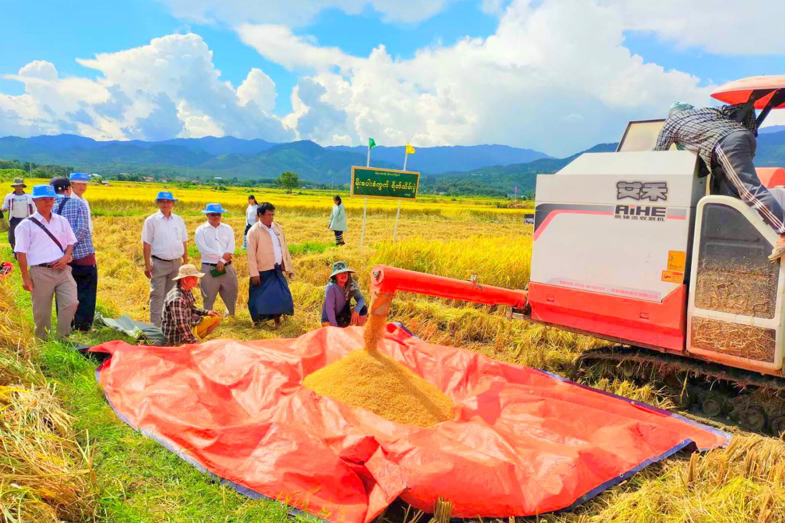 ရှမ်းပြည်နယ်(အရှေ့ပိုင်း)၊ မိုင်းယောင်းခရိုင်၊ မိုင်းယောင်းမြို့နယ် ဝမ်ဘိုးကျေးရွာ၌ အောက်တိုဘာ၅ရက်နေ့က ကွင်းအမှတ်(၉)၊ ဦးပိုင်(၁၁၁)၊ ယမ်းမအနောက်တောင်ကွင်းရှိ တောင်သူ ဦးအိုက်ဘွန်းမား၏ ဆင်းဧကရီ မိုးစပါးစံပြကွက် တစ်ဧကအား ရိတ်သိမ်းခြွေလှေ့စက်ဖြင့် ရိတ်သိမ်းရာ စပါးအစို ၁၄၂ ဒသမ ၅ တင်း၊ စပါးအခြောက် ၁၂၈ ဒသမ ၂၅ တင်း ထွက်ရှိကြောင်း သိရသည်။