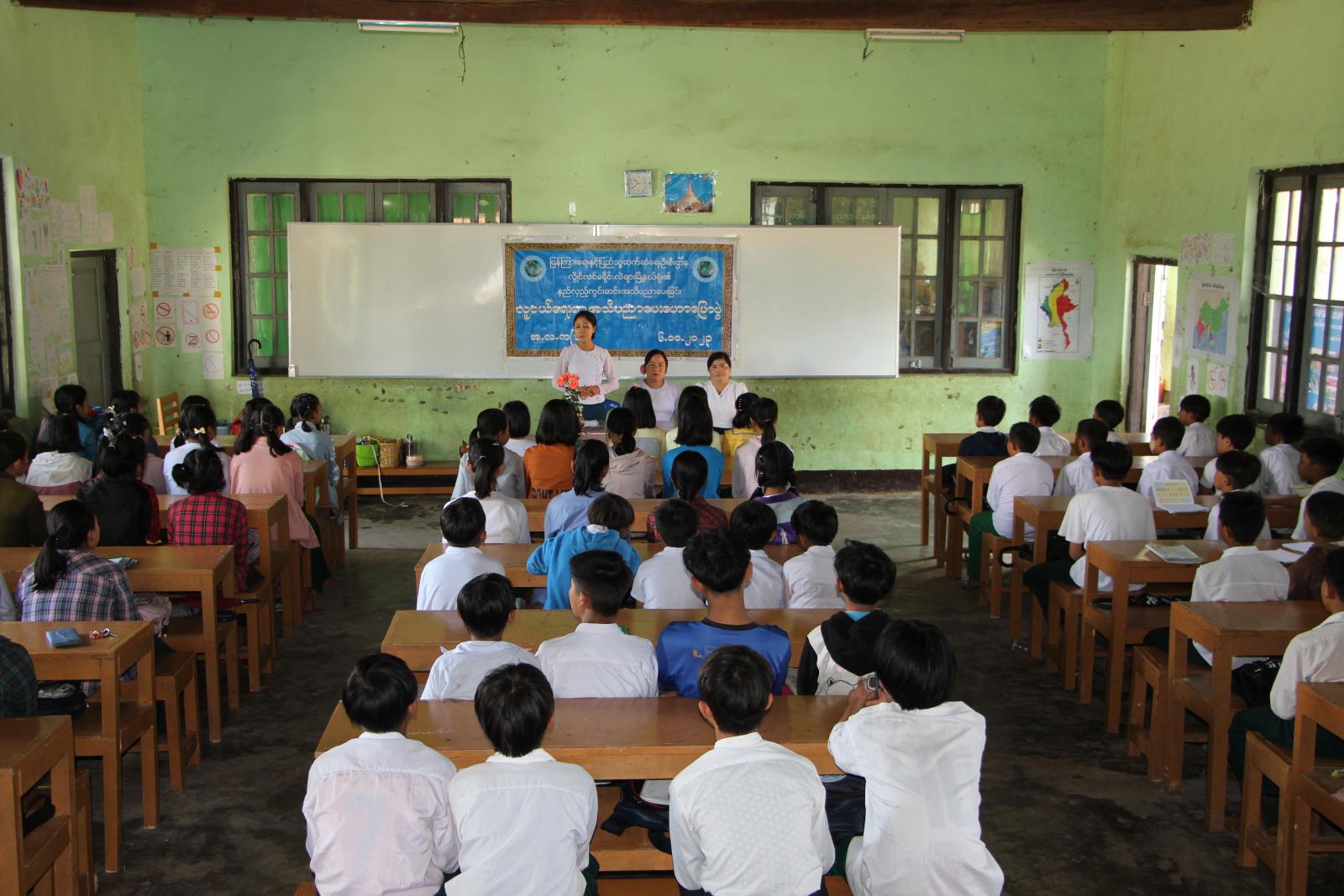 အဆိုပါ အသိပညာပေးဟောပြောပွဲတွင် အခြေခံပညာအလယ်တန်းကျောင်းအုပ်ဆရာမကြီး ဒေါ်စိုးစိုးနိုင်က အဖွင့်အမှာစကား ပြောကြားပြီး မြို့နယ်ပြန်ကြားရေးနှင့်ပြည်သူ့ဆက်ဆံရေးဦးစီးဌာန (ဒုတိယဉီးစီးမှူး) ဒေါ်ဟေမွန်ဉီးမှ ဗလငါးတန်ဖွံ့ဖြိုးတိုးတက်ရေးနှင့်ပတ်သက်၍လည်းကောင်း၊ ကျောင်းပညာရေးတွင်သာမက ဘက်စုံထူးချွန်သော ကျောင်းသား/သူများဖြစ်ထွန်းလာစေရန်အတွက် ကျောင်းစာအပြင် ပြင်ပဗဟုသုတစာအုပ်၊ စာစောင်များကို ဖတ်ရှု့လေ့လာသင့်ကြောင်းကိုလည်းကောင်း၊ အသိပညာပေး ဟောပြောခဲ့ကာ ယာဥ်စည်းကမ်း၊ လမ်းစည်းကမ်းစည်းကမ်း၊ သဘာဝဘေးအန္တရာယ်၊ မူးယစ်ဆေးဝါးအန္တရာယ်အသိပညာပေး နံရံကပ်စာစောင်များကို ပြသပေးခဲ့ကြောင်း သိရသည်။