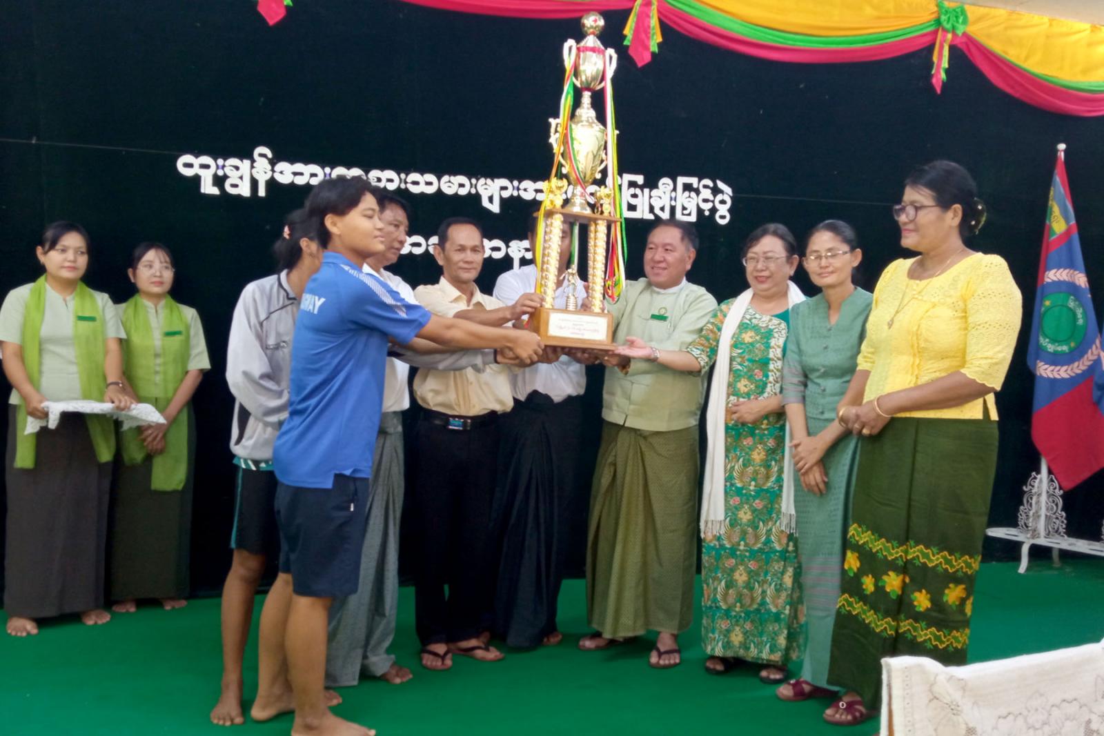 ယင်းနောက် မြို့နယ်အားကစားနှင့်ကာယပညာဦးစီးဌာန မြို့နယ်အားကစားမှူးဦးထွန်းထွန်းဦးနှင့်တာဝန်ရှိသူများက U-19 အမျိုးသမီးဘောလုံးပြိုင်ပွဲ တံခွန်စိုက်ဒိုင်းဆုနှင့် U-25 အမျိုးသားဖူဆယ်ဘောလုံးပြိုင်ပွဲ တံခွန်စိုက်ဒိုင်းဆုတို့ကို မြို့နယ်အားကစားနှင့်ကာယပညာဦးစီးကော်မတီထံသို့ အပ်နှံခဲ့ကြောင်းသိရသည်။