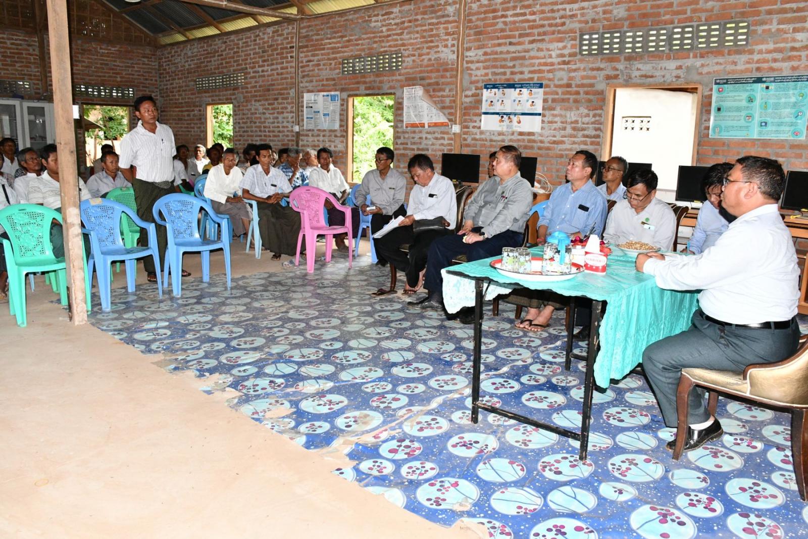 ကျေးလက်ဒေသဖွံ့ဖြိုးတိုးတက်ရေးဦးစီးဌာန၊ ညွှန်ကြားရေးမှူးချုပ် ဦးသိန်းလွင်သည် မန္တလေးတိုင်းဒေသကြီးမှ တာဝန်ရှိသူများလိုက်ပါလျက် နတ်သမီးကမ်းပါး ကျေးလက်ရေပေးရေးလုပ်ငန်းသို့ရောက်ရှိပြီး ရေပေးဝေရေးလုပ်ငန်းများဆောင်ရွက်မှုအခြေအနေများကိုစစ်ဆေးကြည့်ခြင်း၊ ငှက်ပစ်တောင်ရေပေးရေးစက်ရုံ၊ ရေစုရေလှောင်ကန်နှင့် JICA ရုံးဝင်းအတွင်း တွင်းတူးစက်ပစ္စည်းများထားရှိ သိုလှောင်ရုံနှင့် အလုပ်ရုံများ ကြည့်ရှု့စစ်ဆေးရာ တာဝန်ရှိသူများက ရှင်းလင်းပြသသည်။ ဆက်လက်၍ JACA နှင့် နည်းပညာဖလှယ်ရေးပူးပေါင်းဆောင်ရွက်သည့် အပူပိုင်းဇုံကျေးလက်ရေရရှိရေး နည်းပညာပူးပေါင်းဆောင်ရွက်ရေး စီမံကိန်းဖြင့် ဆောင်ရွက်ခဲ့သော ကျေးရွာများအနက် တောင်ရှေ့ကျေးရွာ၊ ကူတောကျေးရွာ၊ ဂျမ်းလှီးကျေးရွာ၊ ထီးပုကျေးရွာ၊ မှန်တောကျေးရွာတို့အား JICA စီမံကိန်းဖြင့်တူးဖော်ခဲ့သည့် တွင်းသစ်(၁၁)၊ တွင်းဟောင်း(၂၀)တွင်း၊ စုစုပေါင်း စက်ရေတွင်း(၃၁)တွင်းတို့အား တွင်းဟောင်းများ ရေထွက်ရှိမှု၊ တွင်းသစ်များ ရေထွက်ရှိမှု၊ ချို့ယွင်းပျက်စီးမှု ကြည့်ရှုစစ်ဆေးခဲ့ပြီးကာ တောင်ဘကျေးရွာ Prepait Water Meter ကြိုတင်ငွေပေးချေစနစ် ရေမီတာအား ကြည့်ရှုစစ်ဆေးခဲ့ပြီး ဒေသခံပြည်သူများနှင့်တွေ့ဆုံကာ ဒေသခံပြည်သူများတင်ပြသည့် အချက်အလက်များအား ကျေးလက်ဒေသဖွံ့ဖြိုးတိုးတက်ရေးဦးစီးဌာန၊ မန္တလေးတိုင်းဒေသကြီး ဦးစီးမှူးက ဆောင်ရွက်ပြီးစီးမှု၊ ဆောင်ရွက်ဆဲနှင့် ဘဏ္ဍာနှစ်အလိုက်ဆောင်ရွက်သွားမည့် လုပ်ငန်းစဉ်များအား ရှင်းလင်းတင်ပြခဲ့ရာ ကျေးလက်ဒေသဖွံ့ဖြိုးတိုးတက်ရေးဦးစီးဌာန၊ ညွှန်ကြားရေးမှူးချုပ် ဦးသိန်းလွင်က ဒေသခံ ပြည်သူများတင်ပြသည့် တင်ပြချက်များကို မူဘောင်အတွင်းမှ အလေးထား လိုက်နာဆောင်ရွက်သွားကြရန် မှာကြားခဲ့ကြောင်း သိရသည်။