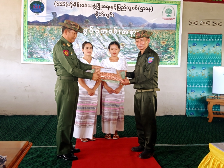 ထို့နောက် နမ့်စန်ခရိုင်စိုက်ပျိုးရေးဦးစီးဌာန ခရိုင်ဦးစီးမှူး ဦးမြသိန်းက စိုက်ပျိုးရေးဆိုင်ရာ ကိစ္စရပ်များနှင့်စပ်လျဉ်း၍လည်းကောင်း၊ ကျေးလက်စိမ်းလန်းမြေကုမ္ပဏီမှ တာဝန်ခံက စိုက်ကွင်းဖော်ဆောင်ထားမှုနှင့်စပ်လျဉ်း၍လည်းကောင်း အသီးသီးရှင်းလင်းပြောကြားခဲ့ပြီး မြို့နယ်အတွင်း စားသုံးဆီဖူလုံရေးအတွက် ဆီထွက်သီးနှံနေကြာမျိုးစေ့နှင့် မြေပဲမျိုးစေ့များကို တိုင်းမှူးနှင့်တာဝန်ရှိသူများက ပေးအပ်ရာ ဒေသခံတိုင်းရင်းသားပြည်သူများက လက်ခံရယူခဲ့ကြပြီး ဟိုမိန်းဒေသနှင့် ပြည်သူ့စစ်(ဌာနေ)ကိုယ်စား လုံစံကျေးရွာ ပြည်သူ့စစ်တာဝန်ခံ ဦးအိုက်ထွန်းက ကျေးဇူးတင်စကား ပြန်လည်ပြောကြားခဲ့ကြောင်း သိရသည်။ ထို့နောက် တိုင်းမှူးနှင့်တာဝန်ရှိသူများက စိုက်ကွင်းအတွင်း လှည့်လည်ကြည့်ရှုအားပေးခဲ့ကြောင်း သိရသည်။