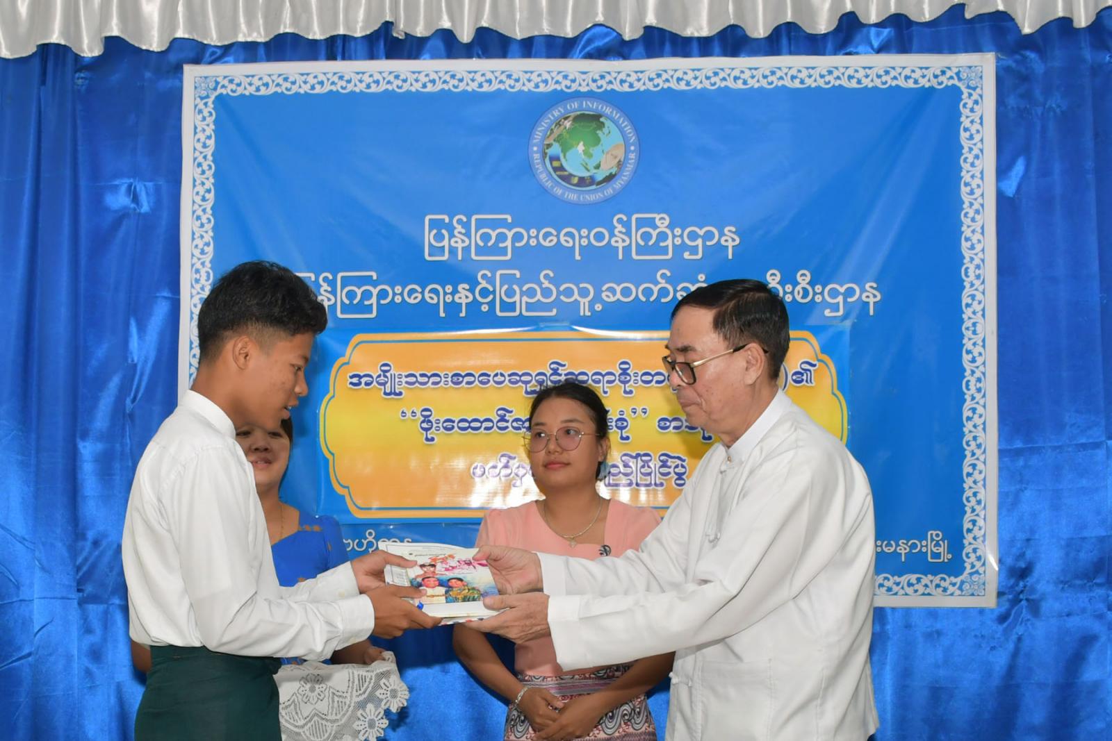 ထို့နောက် နေပြည်တော် ၈ မြို့နယ်အတွင်းရှိ ဖတ်မှတ်စွမ်းရည်ပြိုင်ပွဲဝင် ၄၀ ဦးတို့အား အမျိုးသားစာပေဆုရှင် စာရေးဆရာချစ်နိုင်(စိတ်ပညာ)နှင့် အမျိုးသားစာပေဆုရှင် စာရေးဆရာကြီးစိုးတင့်(ဧရာဝတီ)က လက်ဆောင်ပစ္စည်းများကို အသီးသီးပေးအပ်ခဲ့ကြကြောင်း သိရသည်။
