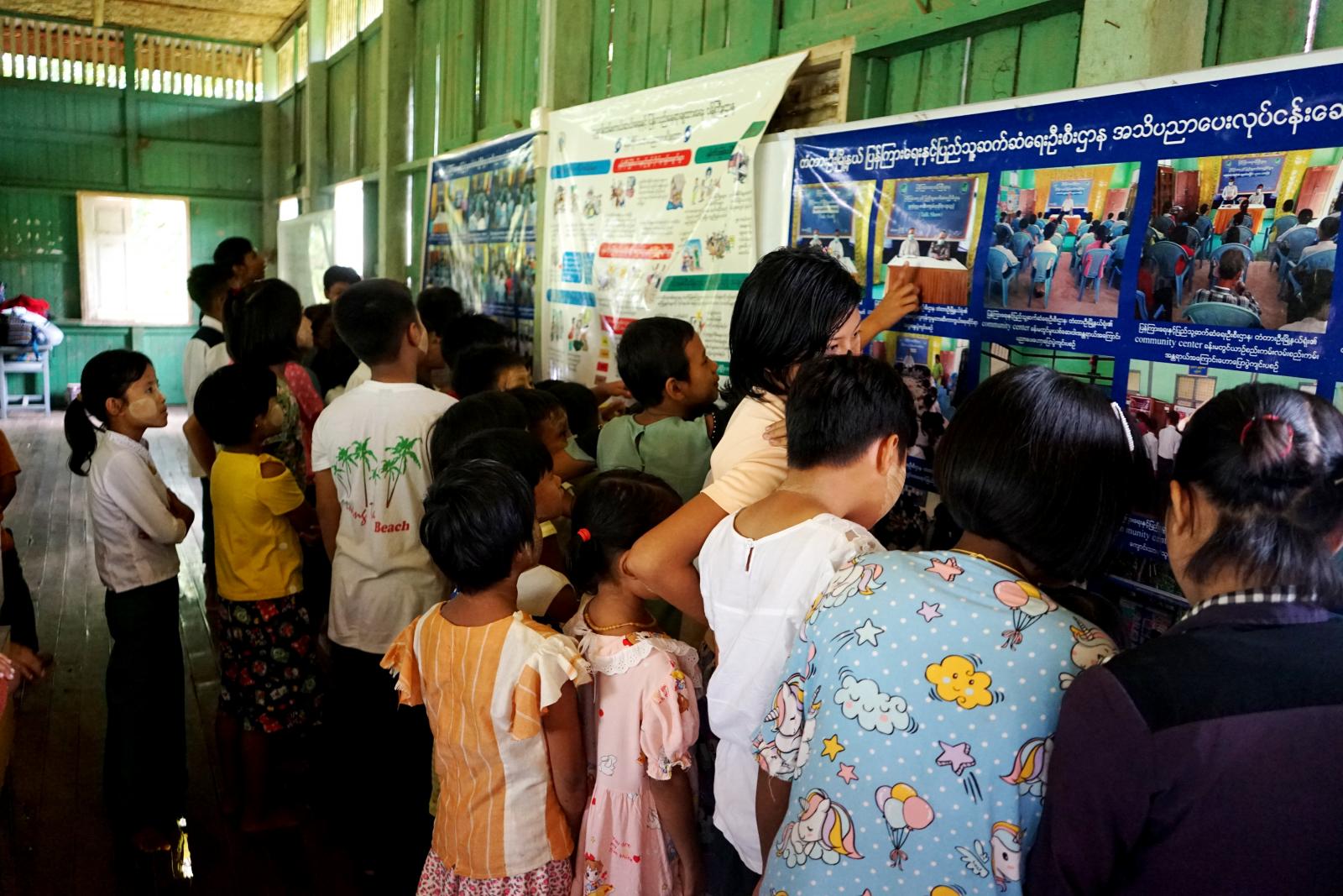 ပြည်သူ့ဝန်ဆောင်မှုလုပ်ငန်းတွင် သင်ပန်းကျေးရွာအခြေခံပညာမူတန်း ကျောင်းအုပ်ဆရာကြီး ဦးကျော်သူရက အမှာစကားပြောကြားပြီး မြို့နယ်ပြန်ကြားရေးနှင့်ပြည်သူ့ဆက်ဆံရေးဦးစီးဌာန ဒုတိယဦးစီးမှူး ဒေါ်သီတာခိုင် စာဖတ်ရှိန်မြှင့်တင်ရေးအတွက် ကျောင်းသား/သူများအနေဖြင့် ကျောင်းစာအပြင် ပြင်ပစာအုပ်စာစောင်များကို ဗဟုသုတရရှိရေးအတွက် ငှားရမ်းဖတ်ရှုလေ့လာသင့်ပါကြောင်း၊ ဒါ့အပြင် ကျောင်းသား/သူများ အဆင်ပြေစေရန်အတွက် သုတ၊ ရသ စာအုပ်စာစောင်မျိုးစုံများ စီစဉ်ထားရှိပြီး စာအုပ်အသစ်များကို စဉ်ဆက်မပြတ် ဖြည့်ဆည်းဆောင်ရွက် ပေးလျက်ရှိကြောင်းနှင့် ယခုငှားရမ်းပေးခဲ့သော စာအုပ်များကို စနစ်တကျလေ့လာမှတ်သားကြစေလိုကြာင်း ပြောကြားသည်။