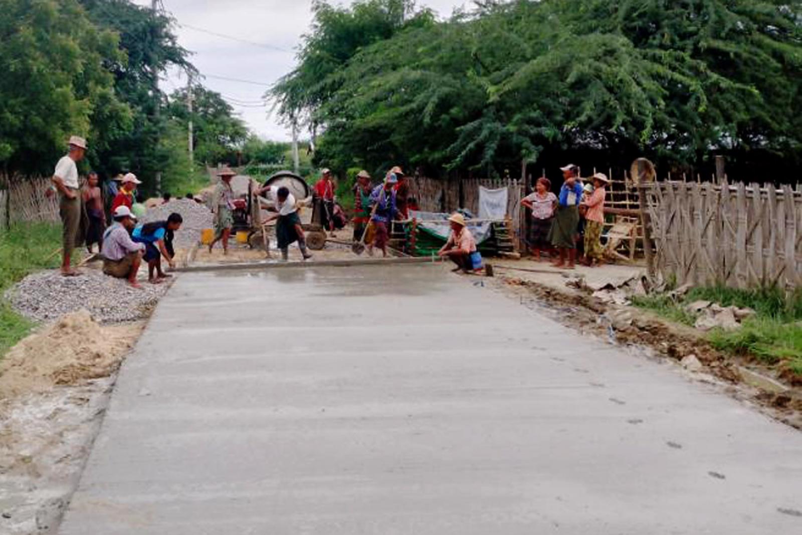 ယင်းသို့ အကောင်အထည်ဖော်ဆောင်ရွက်လျက်ရှိရာမှ ဗြင်းကြီးကျေးရွာအုပ်စု ကျွဲတပ်ကျေးရွာ တွင် နိုင်ငံတော်ထောက်ပံ့ရန်ပုံငွေ ကျပ်သိန်း(၁၅၀)နှင့်ပြည်သူထည့်ဝင်ငွေ (၄၅)သိန်းတို့ဖြင့် ကျေးရွာတွင်း လမ်းအား အရှည်ပေ ၇၅၀၊ အကျယ် ၁၂ပေ၊ ထု ၆လက်မရှိ ကွန်ကရစ်လမ်းခင်းခြင်း လုပ်ငန်း ဆောင်ရွက်လျက်ရှိသည်။ အဆိုပါလုပ်ငန်းများမှ ၉၀ ရာခိုင်နှုန်းပြီးစီးပြီဖြစ်ရာ ရာနှုန်းပြည့် ပြီးစီးပါက အိမ်ခြေ ၁၈၆ လူဦးရေ ၆၇၃ ဦးအား အကျိုးရှိမည်ဖြစ်ကြောင်း မြို့နယ်ဦးစီးမှူး ဦးဝင်းနိုင်ဦးထံမှ သိရသည်။