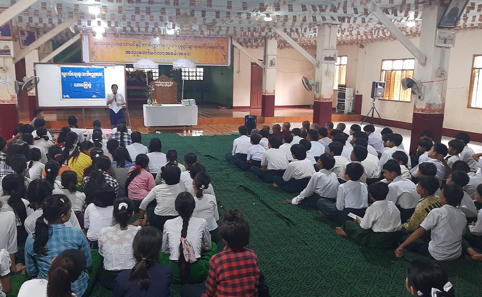 ဟောပြောပွဲတွင် ခရိုင်ပြန်ကြားရေးနှင့်ပြည်သူ့ဆက်ဆံရေးဦးစီးဌာနမှ လက်ထောက်ညွှန်ကြားရေးမှူး ဒေါ်မာမာရီက လူငယ်များအနေဖြင့် လိမ္မာရေးခြားရှိစေရေးအတွက် အသိပညာ၊ အတတ်ပညာသာမက ပြင်ပစာပေဗဟုသုတများ လေ့လာမှတ်သားရမည်ဖြစ်ကြောင်းနှင့် ငယ်ရွယ်စဉ်မှစ၍ ထူးချွန်ထက်မြတ်စေရေန်ဘဝ ရည်မှန်းချက်များထားရှိရမည် ဖြစ်ကြောင်းတိုကို ဟောပြောပေးပြီး ကျောင်းသား/ကျောင်းသူများစာဖတ်သည့် အလေ့အကျင့်ကောင်းများရရှိစေရန် စာဖတ်စွမ်းရည်ပြိုင်ပွဲ ကျင်းပပေးကာ အမှတ်တရလက်ဆောင်များ ချီးမြှင့်ပေးသည်။
