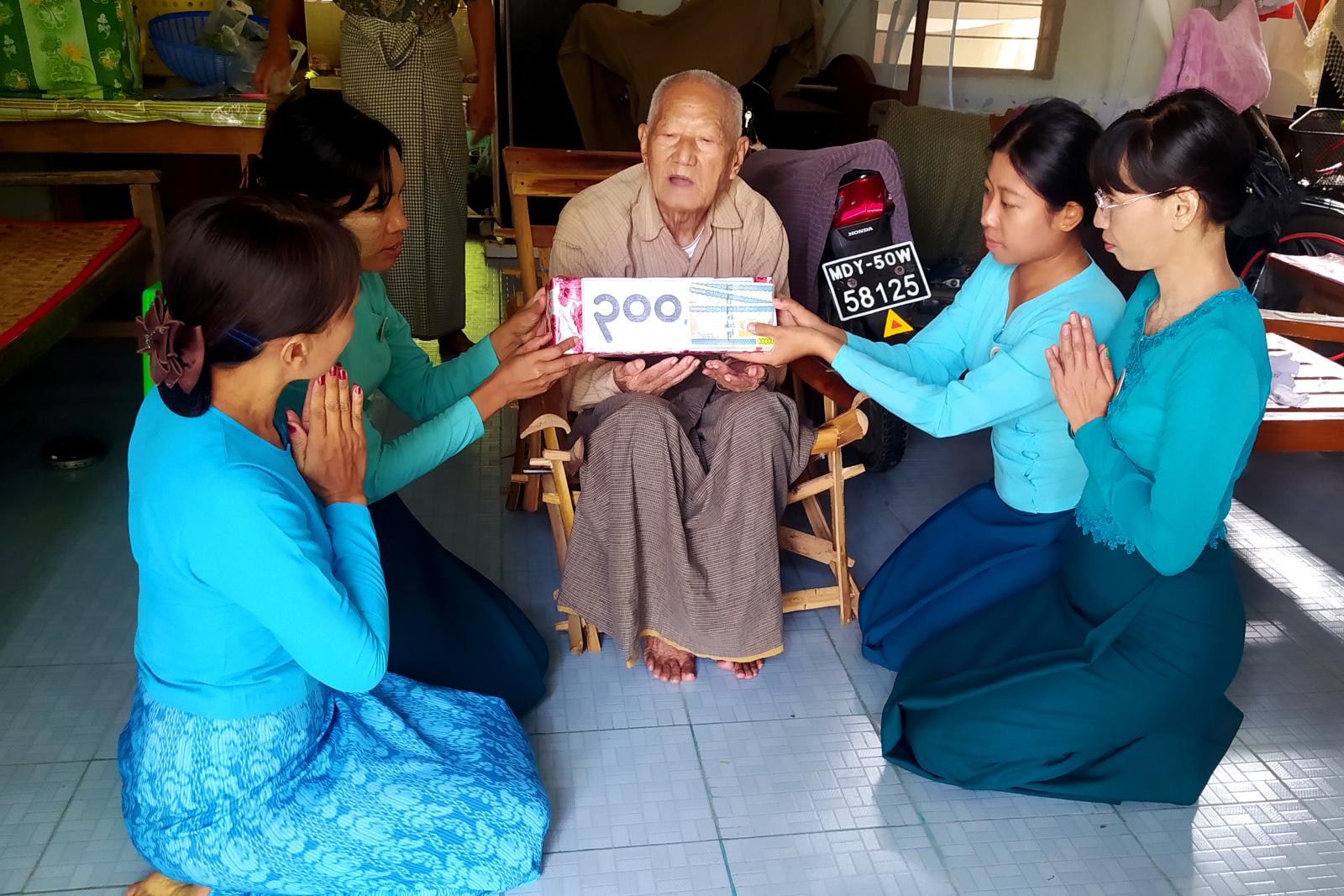 မန္တလေးတိုင်းဒေသကြီး၊ မလှိုင်မြို့နယ်စီမံအုပ်ချုပ်ရေးအဖွဲ့ ဥက္ကဋ္ဌ၊ မြို့နယ်အုပ်ချုပ်ရေးမှူး ဦးစိုးမင်းထက်ဦးဆောင်၍ မြို့ပေါ်ရပ်ကွက်(၄) ရပ်ကွက်နှင့်ကျေးရွာအုပ်စု(၅၂)အုပ်စုမှအုပ်ချုပ်ရေးမှူး များ၊ စာရေးဝန်ထမ်းများ၊ မြို့နယ်မိခင်နှင့်ကလေးစောင့်ရှောက်ရေးအသင်းဝင်များနှင့် မြို့နယ်အမျိုး သမီးရေးရာအဖွဲ့ဝင်များသည် ယနေ့နံနက်ပိုင်းက မြို့နယ်အတွင်းရှိ အသက်(၈၅)နှစ်နှင့် အထက် သက်ကြီး ဘိုး/ဘွားများအား အိမ်တိုင်ရာရောက် ကိုယ်တိုင်သွားရောက် ထောက်ပံ့ပေးခဲ့ကြောင်း သိရသည်။