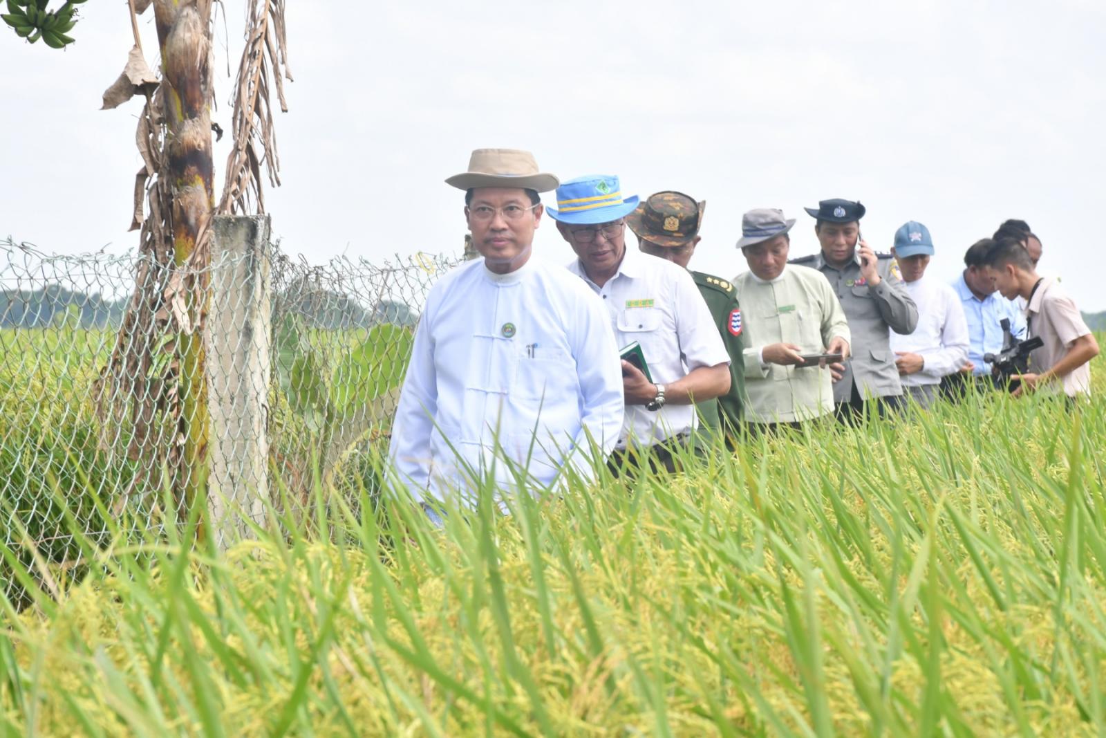 ဦးစွာ တိုင်းဒေသကြီး ဝန်ကြီးချုပ်နှင့်တာဝန်ရှိသူများသည် အိမ်မဲမြို့နယ်၊ ဘုရားကြီးကုန်း ကျေးရွာအုပ်စု၊ ဆိတ်ချေးကုန်းကျေးရွာရှိ နိုင်ငံ့စီးပွားမြှင့်တင်ရေးရန်ပုံငွေ (၈)ဘီလီယံမှ သွင်းအားစုထောက်ပံ့ငွေဖြင့် ဆောင်ရွက်ပြီး ပိုက်ဆံလျှော်သစ်စိမ်းမြေဩဇာ မြေခံထည့်သွင်းစိုက်ပျိုးထားသည့် တောင်သူဒေါ်သန်းထွေး၏ လယ်ဧက (၃)ဧကတွင် ပြုလုပ်သည့် နယူးဧရာ(၁) မျိုးစပါး မိုးစပါးစံကွက် ရိတ်သိမ်းပွဲသို့ တက်ရောက်ကြည့်ရှု အားပေးခဲ့ပြီး တောင်သူများနှင့် တွေ့ဆုံ၍ တစ်ဧက (၁၀)တင်း ပိုမိုတိုးတက် ထွက်ရှိစေရေးအတွက် အထွက်တိုးမျိုးစပါးများ ပြောင်းလဲအသုံးပြုခြင်း၊ စိုက်နည်းစနစ်များ ပြောင်းလဲစိုက်ပျိုးခြင်း၊ သဘာဝမြေဩဇာများ အချိုးကျသုံးစွဲခြင်း၊ ပိုက်ဆံလျှော် သစ်စိမ်းမြေဩဇာများ မြေခံထည့်သွင်းစိုက်ပျိုးခြင်းများ ဆောင်ရွက်ခဲ့ရာ တစ်ဧက အထွက်နှုန်းများ တိုးတက်လာသည်ကို တွေ့ရှိနေပြီဖြစ်ပါကြောင်း၊ သီးထပ်စွမ်းအားများ တိုးမြှင့်ဆောင်ရွက်ရန် လိုပါကြောင်းနှင့် ပန်းတိုင်အထွက်နှုန်းများ ရရှိစေရေး ဆက်လက်ဆောင်ရွက်သွားကြရန် ဆွေးနွေးပြောကြားခဲ့ပြီး စံကွက်ရိတ်သိမ်းနေမှုအား ကြည့်ရှုအားပေးခဲ့သည်။ အဆိုပါ တောင်သူဒေါ်သန်းထွေး၏ နယူးဧရာ(၁) မျိုးစပါး မိုးစပါး စံကွက်ရိတ်သိမ်းခဲ့ရာတွင် တစ်ဧကလျှင် ပျမ်းမျှအထွက်နှုန်း (၁၃၄)တင်း ထွက်ရှိခဲ့ပြီး အထွက်တိုးမျိုးစပါးများ ပြောင်းလဲ အသုံးပြုခြင်း၊ စိုက်နည်းစနစ်များ ပြောင်းလဲစိုက်ပျိုးခြင်း၊ သဘာဝမြေဩဇာများ အချိုးကျ သုံးစွဲခြင်း၊ ပိုက်ဆံလျှော် သစ်စိမ်းမြေဩဇာများ မြေခံထည့်သွင်း စိုက်ပျိုးခြင်းများအပြင် ရိတ်သိမ်း ခြွေလှေ့စက်မောင်းသင်တန်းဆင်းများမှ စနစ်တကျဖြင့် ရိတ်သိမ်းခြင်းတို့ကြောင့် လေလွင့်မှုများနည်းပါးကာ အထွက်နှုန်းတိုးခြင်းဖြစ်ကြောင်း သိရသည်။