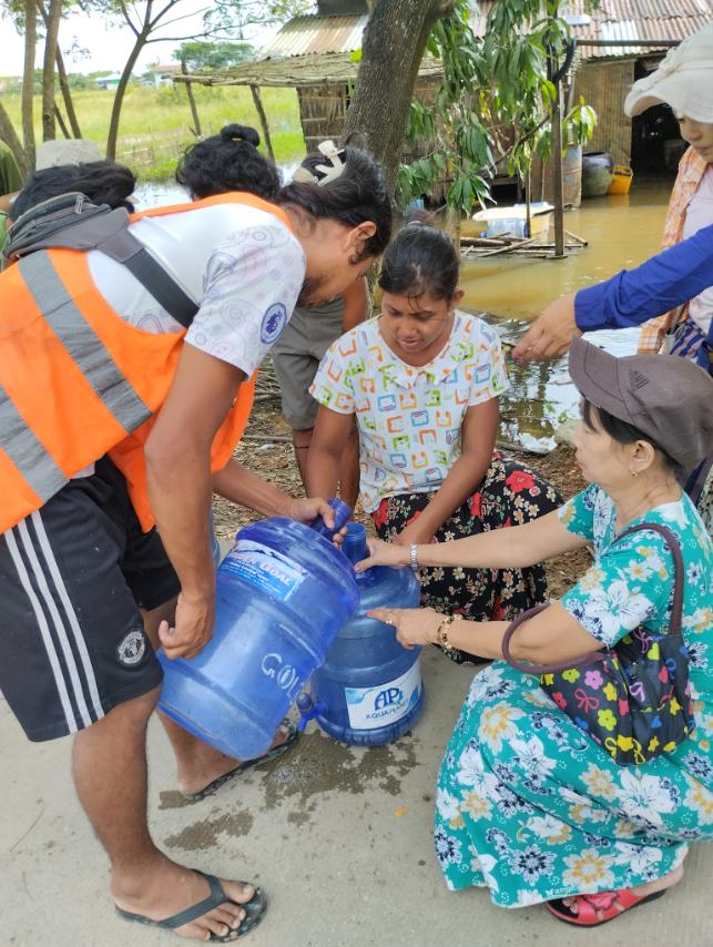 ရန်ကုန်တိုင်းဒေသကြီး၊ ဒဂုံမြို့သစ်ခရိုင်၊ ဒဂုံမြို့သစ် (အရှေ့ပိုင်း) မြို့နယ်တွင် ရေကြီးရေလျှံဖြစ်ပေါ်လျက်ရှိသော (၁၃၀၊ ၁၃၁၊ ၁၃၈) ရပ်ကွက်များသို့ ရပ်ကွက်နေပြည်သူလူထုမှ အခက်အခဲဖြစ်ပေါ်လျက်ရှိသော သောက်သုံးရေ (ရေသန့်)များအား ယမန်နေ့က သွားရောက်လှူဒါန်းခဲ့ကြသည်။