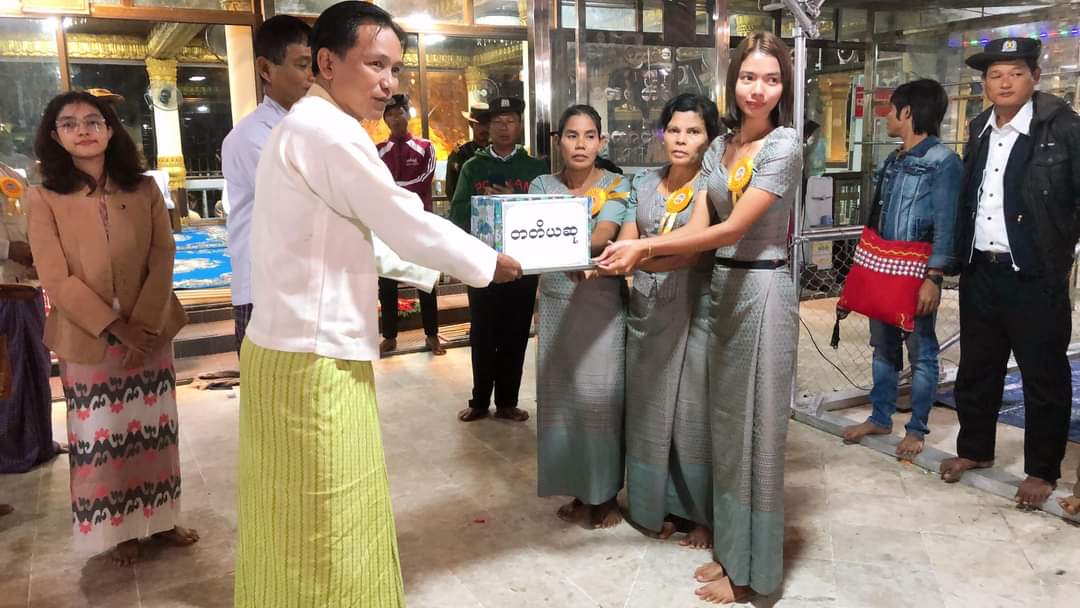 ထို့နောက် ရက်ကန်းခတ်သည့် သမီးပျိုများအား တာဝန်ရှိသူများနှင့် အလှူရှင်များမှ ဆုငွေများပေးအပ်ကာ ရက်ကန်းခတ်လုပ်ပြီးသည့် မသိုးသင်္ကန်းများကို ဆံတော်ရှင် ကျိုက်ထီးရိုးစေတီ ရင်ပြင်၌ ပူဇော်ထားရှိသော ဗုဒ္ဓမြတ်စွာဘုရားများအား ကပ်လှူ ပူဇော်သွားမည်ဖြစ်ကြောင်း သိရသည်။