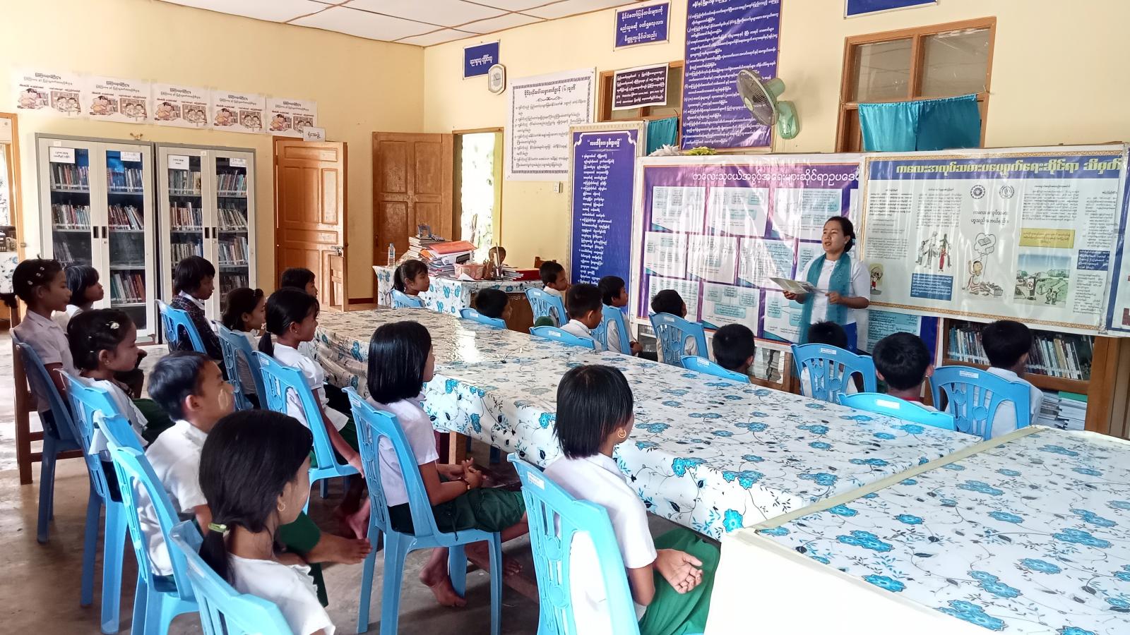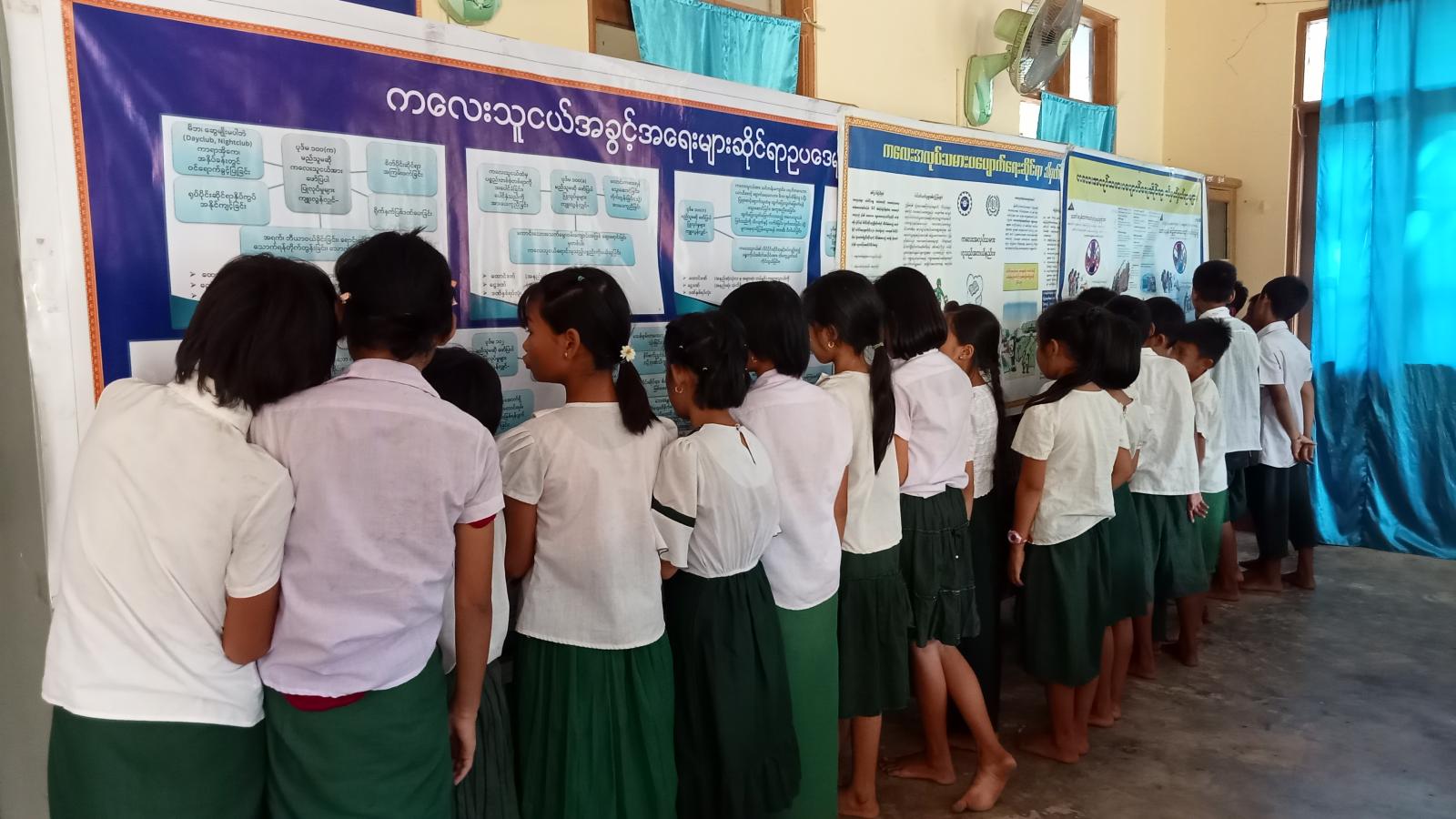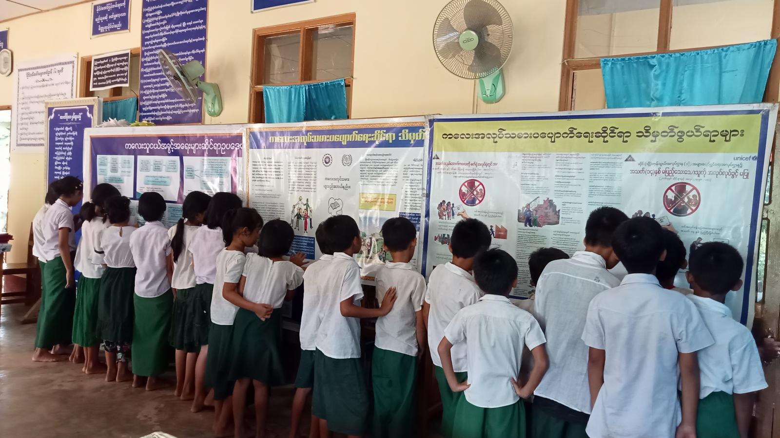 ထို့နောက် ကလေးအလုပ်သမားဟူသည်အဘယ်နည်း၊ ကလေးအလုပ်သမားနှင့်ပတ်သက်သည့် အဓိပ္ပာယ်ဖွင့်ဆိုချက်များ၊ ကလေးသူငယ်အခွင့်အရေးများဆိုင်ရာဉပဒေများ၊ ပြစ်မှု၊ ပြစ်ဒဏ်များ၊ ကလေးအလုပ်သမားလျော့နည်းစေရန် ကြိုတင်ကာကွယ်ရမည့်နည်းလမ်းများ၊ ကလေးများ လုပ်သော အလုပ်နှင့်ကလေးသူငယ်အခွင့်အရေးများ၊ လုပ်ငန်းရှင်များအတွက် ကလေးသူငယ် အချက်အလက်များဆိုင်ရာ သိမှတ်ဖွယ်ရာများစသည့် ကလေးသူငယ်အခွင့်အရေးများဆိုင်ရာ အသိပညာပေးနံရံကပ်စာစောင်များကို ပြသဆောင်ရွက်ထားရာ ကျောင်းသား/သူ ကလေးသူငယ်များက စိတ်ဝင်စားစွာ ကြည့်ရှုလေ့လာခဲ့ကြောင်း သိရသည်။