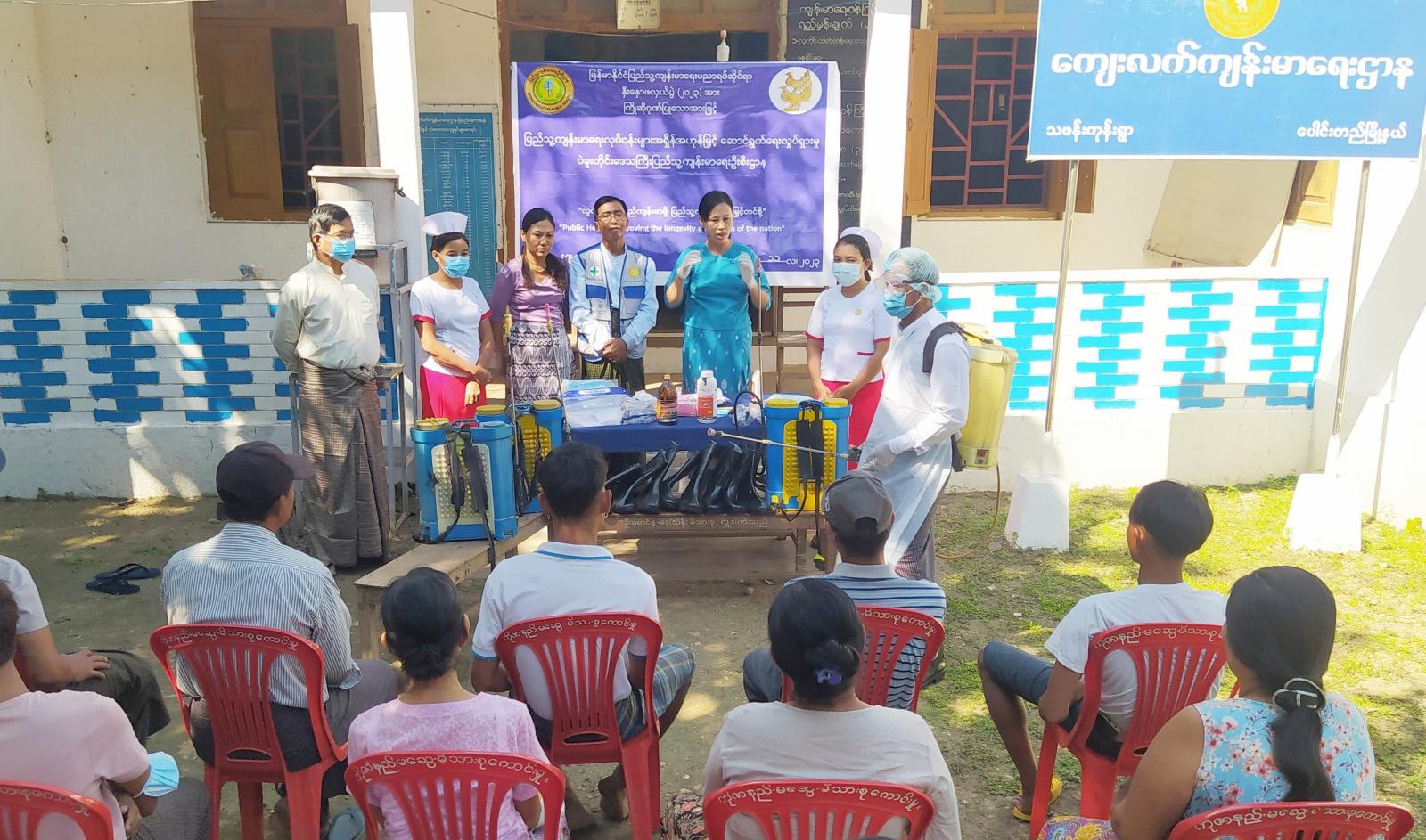 ဆက်လက်၍ ပိုးသတ်ဆေးဖြန်းရာတွင် အန္တရာယ်ကင်းစေရန် ဝတ်ဆင်ရမည့် ဝတ်စုံ အပြည့်စုံနှင့် လိုအပ်သည့် အသုံးဆောင်ပစ္စည်းများအား တောင်သူများအား ထောက်ပံ့ပေးအပ်ခဲ့ကြကြောင်း သိရသည်။ ယင်းနောက် ဝတ်စုံပြည့် ဝတ်ဆင်ပြီး လယ်ယာလုပ်ငန်းခွင်၌ အန္တရာယ်ကင်းရှင်းစွာဖြင့် ပိုးသတ်ဆေးဖြန်းခြင်းကို သရုပ်ပြသပေးခဲ့ကြကြောင်း သိရသည်။