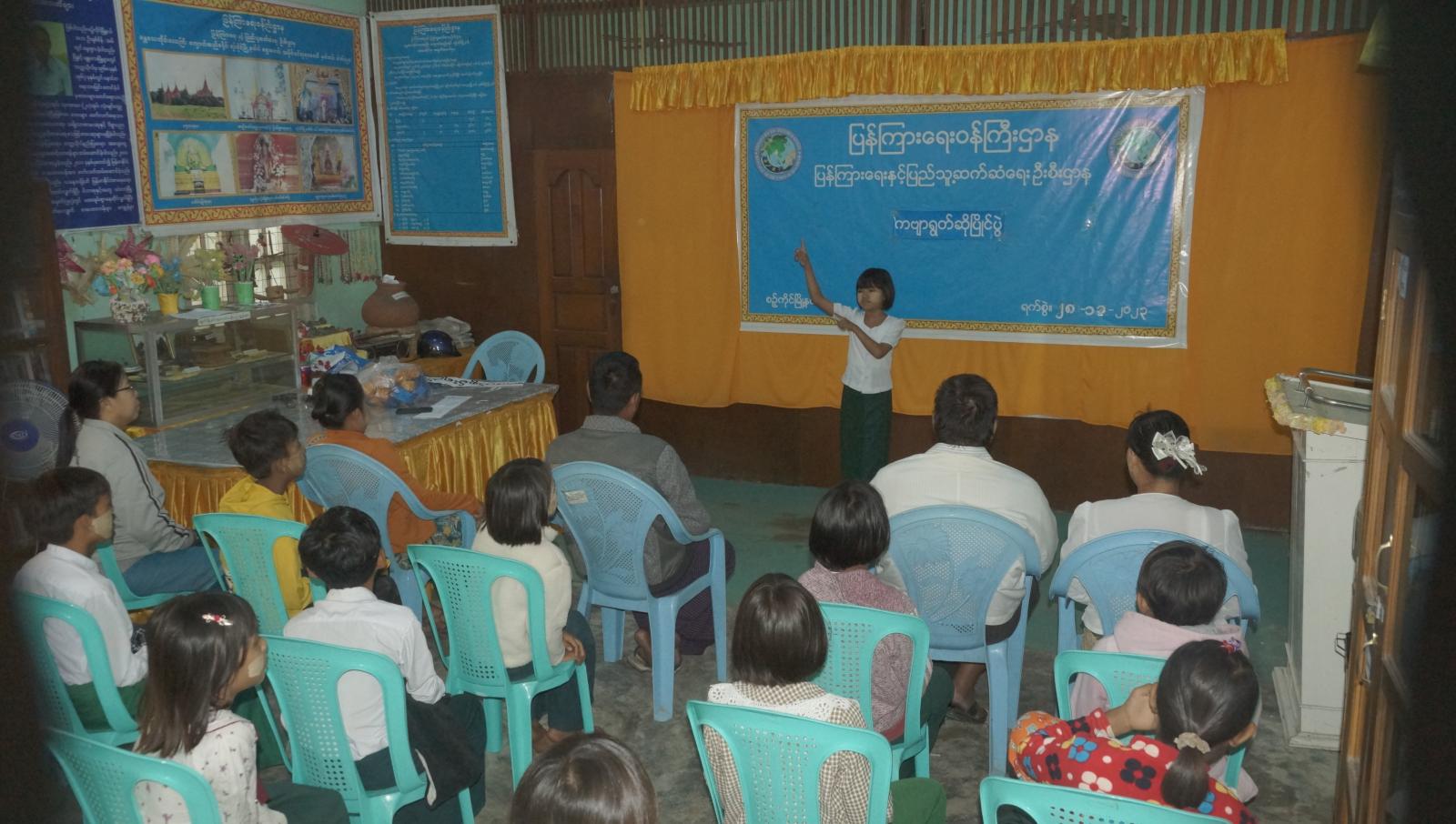 မန္တလေးတိုင်းဒေသကြီး၊ ကျောက်ဆည်ခရိုင်၊ စဉ့်ကိုင်မြို့နယ်၊ ပြန်ကြားရေးနှင့် ပြည်သူ့ဆက်ဆံရေးဦးစီးဌာန၊ လူထုအခြေပြုဗဟိုဌာန (Community centre) ခန်းမတွင် ကျောင်းသား/သူ ကလေးငယ်များ စာပေနှင့်ထိတွေ့၍ စာဖတ်သည့် အလေ့အကျင့်ကောင်းများ ဖြစ်ပေါ်လာစေရန်၊ အသိပညာ ဗဟုသုတများ ဖွံ့ဖြိုးတိုးတက်လာစေရန်နှင့် ဉာဏ်ရည်ဉာဏ်သွေးများ ထက်မြက်လာစေရန်၊ အချိန်ကို အကျိုးရှိစွာ အသုံးချတတ်စေရန်၊ အစုအဖွဲ့လိုက် ပူးပေါင်းဆောင်ရွက်တတ်သည့် အလေ့အကျင့်ကောင်းများ ရှိလာစေရန်နှင့် သွက်လက်ထက်မြတ်သော ကလေးများ ဖြစ်ပေါ်လာစေရေးတို့ကို ရည်ရွယ်၍ ကဗျာရွတ်ပြိုင်ပွဲနှင့် ပုံပြင်ပြောပြိုင်ပွဲများကို ယနေ့နံနက် ၁၀:၀၀နာရီက ကျင်းပခဲ့သည်။