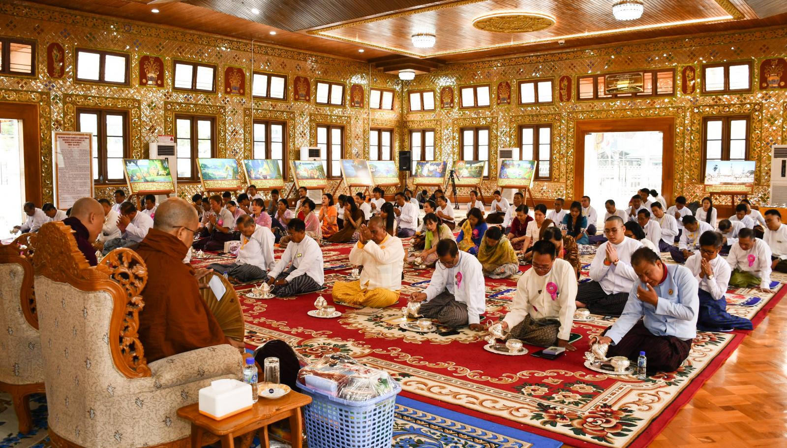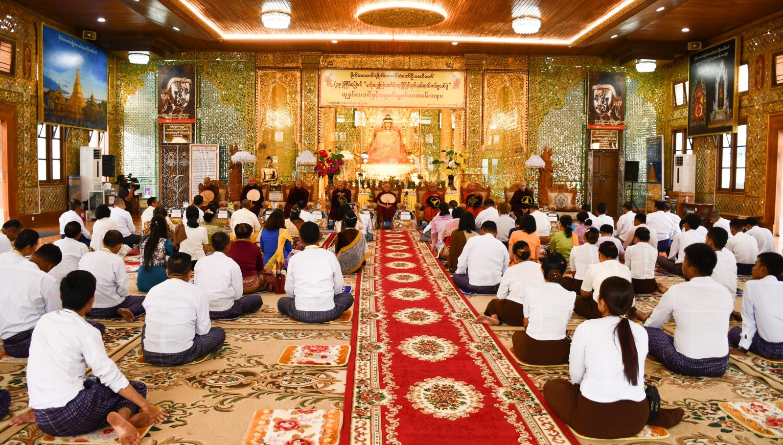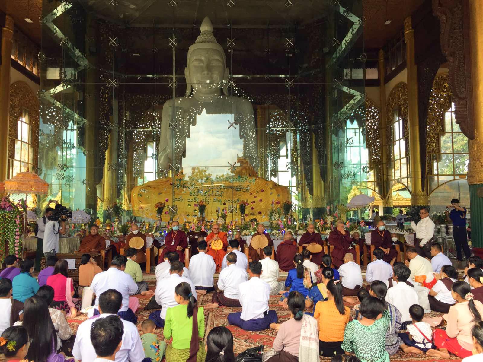ထို့နောက် နိုင်ငံတော်သံဃမဟာနာယကအဖွဲ့ ဒုတိယဥက္ကဋ္ဌ အဂ္ဂမဟာပဏ္ဍိတ၊ အဂ္ဂမဟာသဒ္ဓမ္မဇောတိကဓဇ(ကျောက်မဲဆရာတော်) ဘဒ္ဒန္တစန္ဒနသာရထံမှပရိသတ်များက ကိုးပါးသီလ ခံယူဆောက်တည်ကြပြီးသံဃာတော် အရှင်သူမြတ်များ ချီးမြှင့်သည့် အန္တရယ်ကင်းပရိတ်တရားတော်များ နာယူကြသည်။