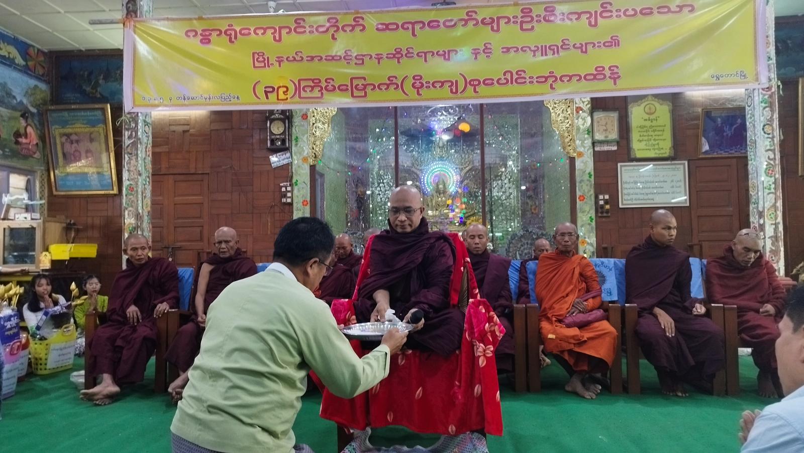 ဆက်လက်၍ မဟာဝိသုတာရာမ ဂန္ဓာရုံကျောင်းတိုက်ဆရာတော်မှ ကထိန်အနုမောဒနာတရားဟောကြား၍ ရေစက်သွန်းချ အမျှပေးဝေခဲ့ကြသည်။ ထို့နောက် ရွှေတောင်မြို့နယ်အတွင်းရှိ ကထိန်လျာသင်္ကန်း ဆက်ကပ်လှူဒါန်းရရှိမှုမရှိသော ကျောင်းတိုက်များကို မဲစနစ်ဖြင့် ကထိန်လျာသင်္ကန်းနှင့် လှူဒါန်းမှုအစုစုတို့အား ဆက်ကပ်လှူဒါန်းခဲ့ကြပြီး ကြွရောက်တော်မူလာကြကုန်သော ဆရာတော် သံဃာတော်အရှင်သူမြတ်များနှင့် ကထိန်အလှူရှင် ဒါယိကာမ /ဒါယိကာမ အပေါင်းတို့မှ " ဗုဒ္ဓသာသနံ စိရံတိဌတု "သုံးကြိမ်ရွတ်ဆိုပြီး အခမ်းအနားကို ရုတ်သိမ်းခဲ့ကြောင်း သိရသည်။