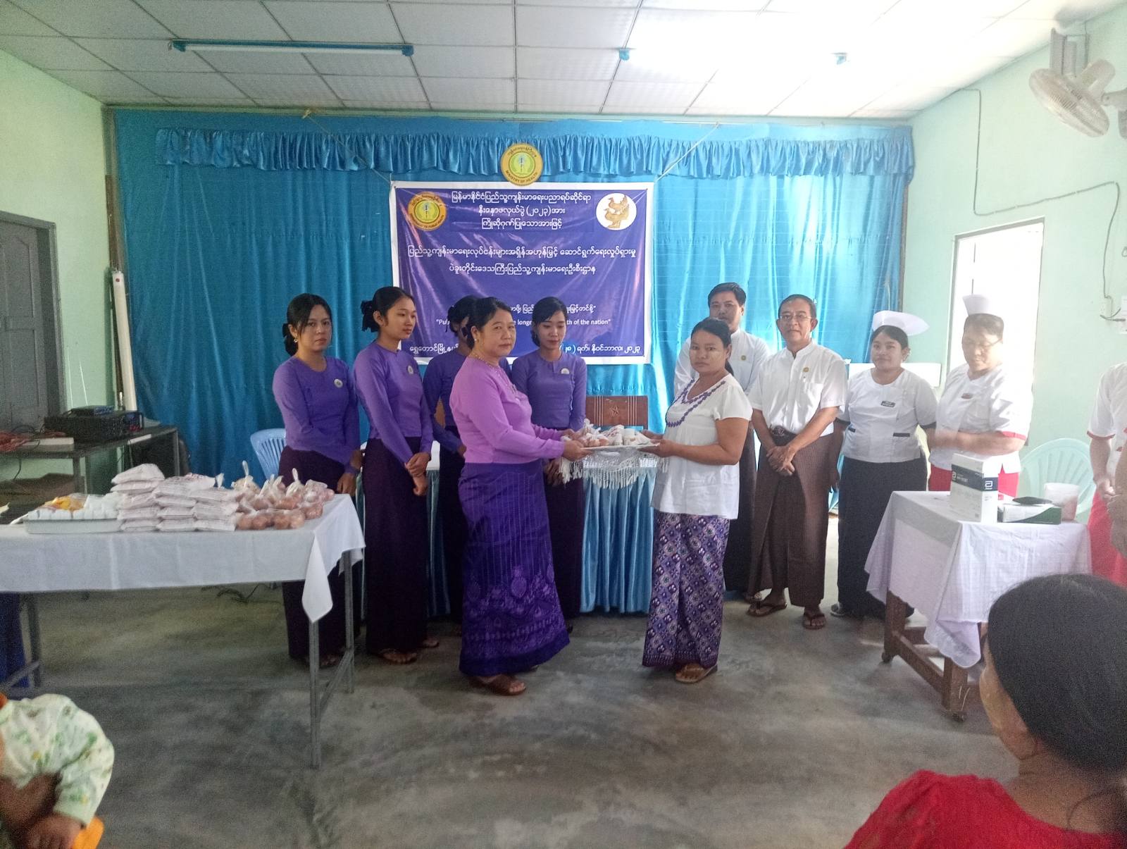 ဆက်လက်၍ အမျိုးသမီးကျန်းမာရေးဆရာမဒေါ်ကေသီက မိခင်နှင့်မျိုးဆက်ပွားကျန်းမာရေးနှင့် မိခင်နို့စနစ်တကျတိုက်ကျွေးမှုများကို သရုပ်ပြပညာပေးဟောပြောခဲ့ပြီး ကိုယ်ဝန်ဆောင်နှင့်နို့တိုက်မိခင်များအား အာဟာရပစ္စည်းများနှင့်ဆေးဝါးများထောက်ပံ့ပေးအပ်ခဲ့သည်။
