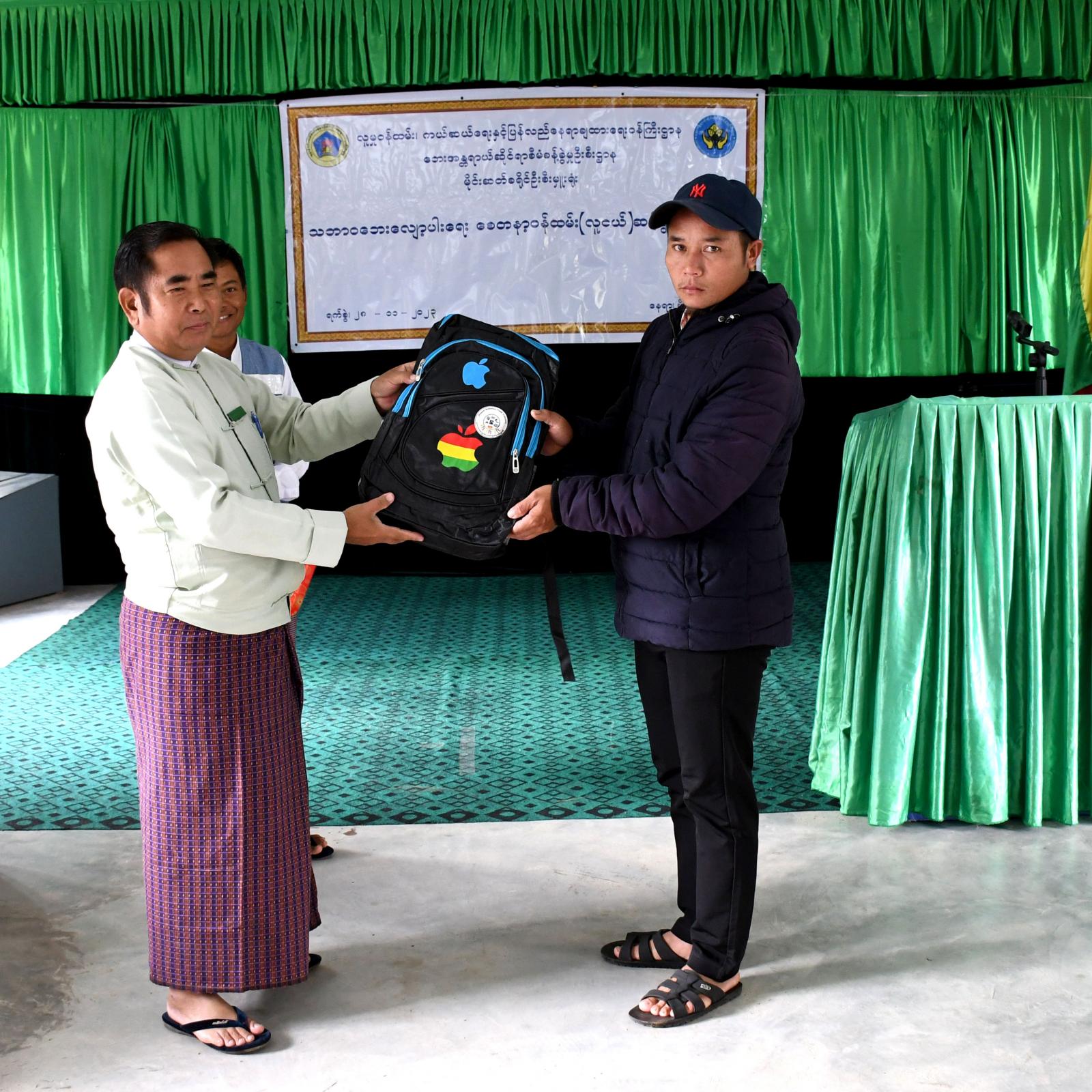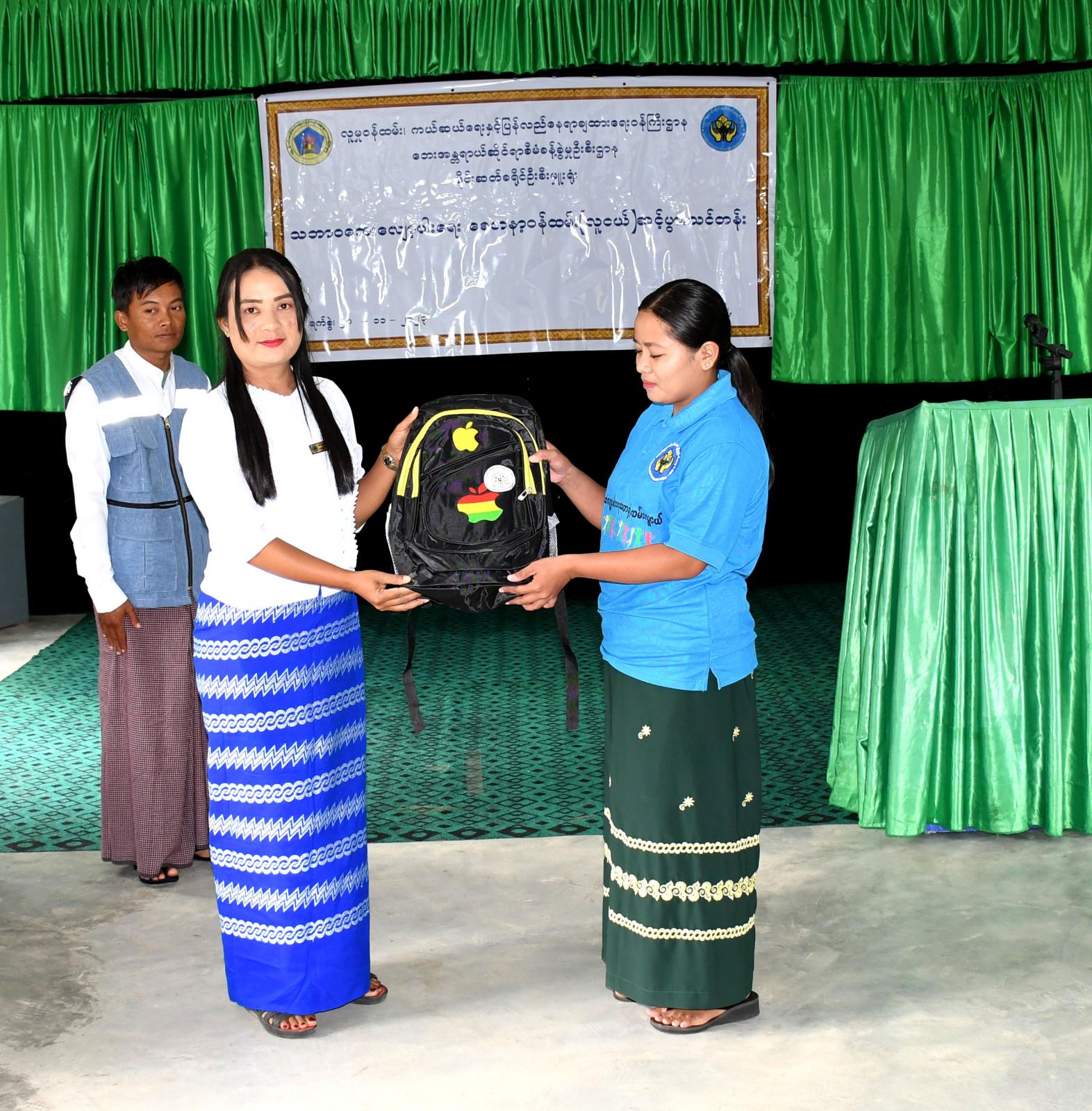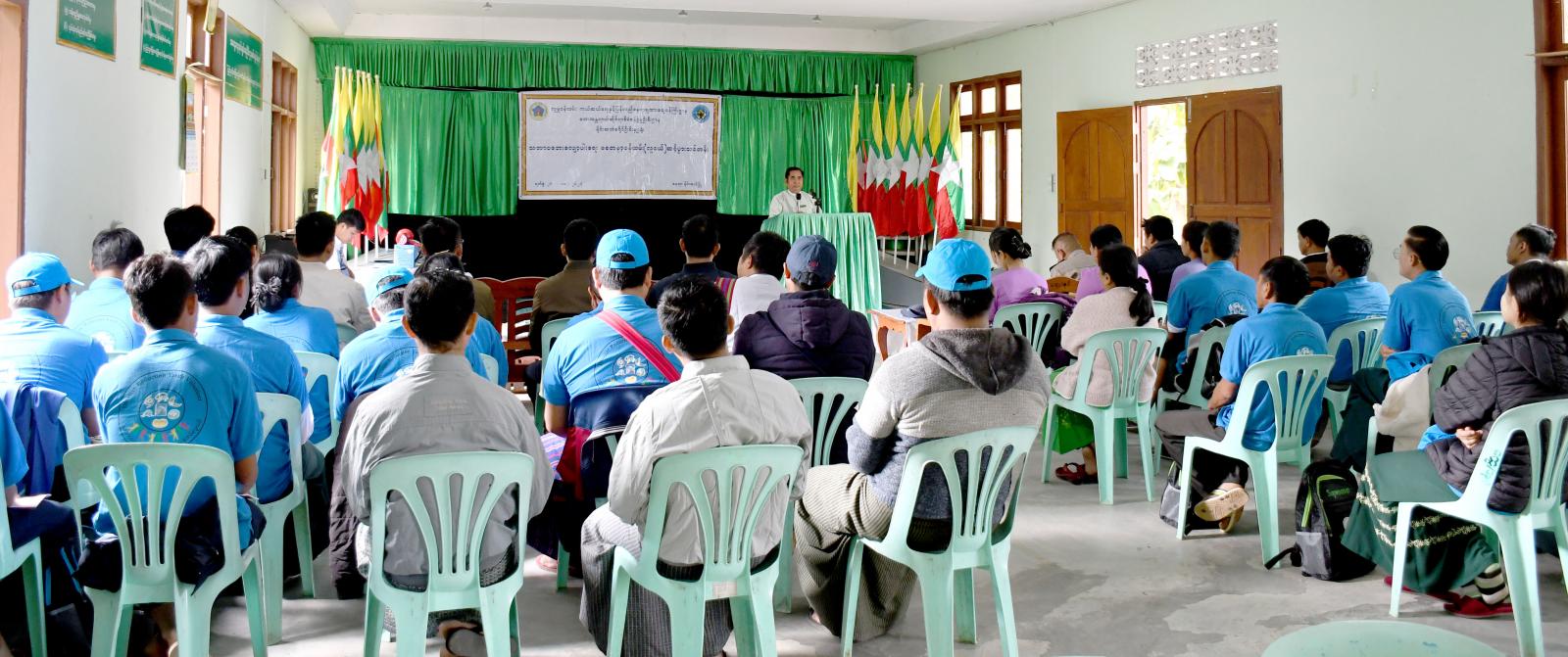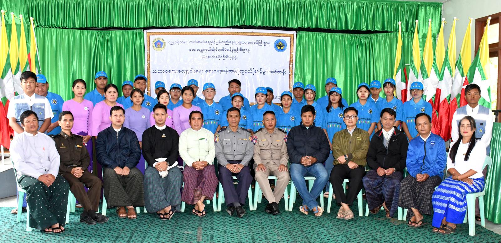 ထို့နောက် မြို့နယ်သဘာဝဘေးစီမံခန့်ခွဲမှုကော်မတီဥက္ကဋ္ဌ ဦးအားလွန်၊ မြို့နယ်ရဲတပ်ဖွဲ့မှူး ရဲမှူး ဌေးမြင့်နှင့် ခရိုင်ဘေးအန္တရာယ်ဆိုင်ရာစီမံခန့်ခွဲမှုဦးစီးဌာနမှ ဦးစီးအရာရှိ ဒေါ်စန္ဒာရွှေတို့က သဘာဝဘေးလျော့ပါးရေး သင်တန်းသား၊ သင်တန်းသူများအတွက် သင်ထောက်ကူပစ္စည်းများ ထောက်ပံ့ပေးအပ်ရာ သင်တန်းသား၊ သင်တန်းသူများက လက်ခံရယူကာ ခရိုင်ဘေးအန္တရာယ် ဆိုင်ရာစီမံခန့်ခွဲမှုဦးစီးဌာနမှ ဦးစီးအရာရှိ ဒေါ်စန္ဒာရွှေက မြို့နယ်သဘာဝဘေးစီမံခန့်ခွဲမှုကော်မတီ အတွက် Hand Speaker များပေးအပ်ရာ မြို့နယ်သဘာဝဘေးစီမံခန့်ခွဲမှုကော်မတီဥက္ကဋ္ဌ ဦးအားလွန်က လက်ခံရယူခဲ့ပြီး သင်တန်းကို သင်တန်းသား၊ သင်တန်းသူ(၃၀)ဦးဖြင့် နိုဝင်ဘာလ (၂၈)ရက်နေ့မှ (၃၀) ရက်နေ့အထိ (၃) ရက်ကြာ သင်ကြားပို့ချသွားမည်ဖြစ်ကြောင်း ခရိုင်ဘေးအန္တရာယ်ဆိုင်ရာစီမံခန့်ခွဲမှုဦးစီးဌာနမှ သိရသည်။