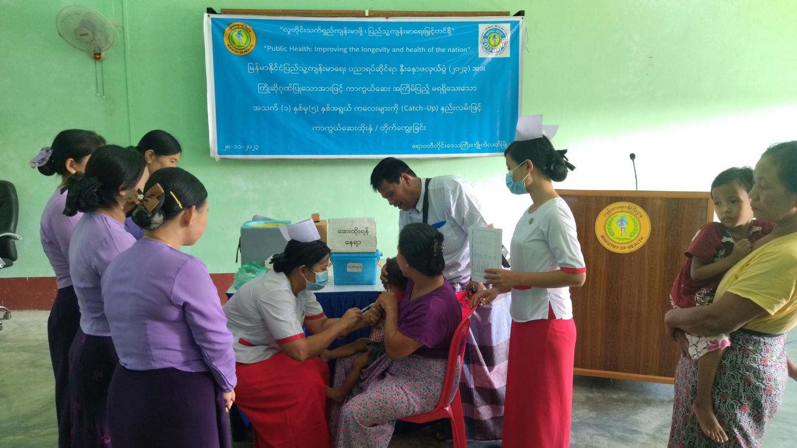 အဆိုပါ အသက်(၁)နှစ်မှ (၅)နှစ်အရွယ်ကလေးငယ်များအား Catch-Up ကာကွယ်ဆေး ထိုးနှံ တိုက်ကျွေးခြင်း လုပ်ငန်းများကို အပတ်စဉ် တနင်္လာနေ့မှ သောကြာနေ့ထိ ပုံမှန်ကာကွယ်ဆေးထိုး၊ ဆေးတိုက်ခြင်းကိုလည်း ဆောင်ရွက်ပေးလျက်ရှိပြီး ကာကွယ်ဆေး အားလုံးကို သတ်မှတ်ထားသော အကြိမ်နှင့် သတ်မှတ်ထားသော အသက်အရွယ်တွင် ဆေးထိုး၊ ဆေးတိုက်ပေးနိုင်မှသာလျှင် ကလေးငယ်တို့ကို ပြင်းထန်တီဘီရောဂါ၊ ဆုံဆို့နာရောဂါ၊ ကြက်ညှာချောင်းဆိုးရောဂါ၊ မေးခိုင်ရောဂါ၊ အသည်းရောင်အသားဝါ(ဘီ)ရောဂါ၊ ဦးနှောက်အမြှေး ရောင်ရောဂါ၊ ပြင်းထန်အဆုတ်ရောင်ရောဂါ၊ ပိုလီယိုအကြောသေရောဂါ၊ ပြင်းထန်ဝမ်းပျက် ဝမ်းလျှောရောဂါ၊ ဂျပန်ဦးနှောက်ရောင် ရောဂါ၊ ဝက်သက်ရောဂါနှင့် ဂျိုက်သိုးရောဂါတို့မှ ကာကွယ်ပေးနိုင်မည် ဖြစ်ကြောင်းနှင့် ပုံမှန်ကာကွယ်ဆေး ထိုးနှံ/တိုက်ကျွေးခြင်းနှင့် အသက်(၁)နှစ်မှ (၅)နှစ်အရွယ် ကလေးငယ်(၃၀)ဦးအား Catch-Up နည်းလမ်းဖြင့် ယနေ့ကာကွယ်ဆေးထိုးနှံ တိုက်ကျွေးပေးနိုင်ခဲ့ကြောင်း သိရသည်။