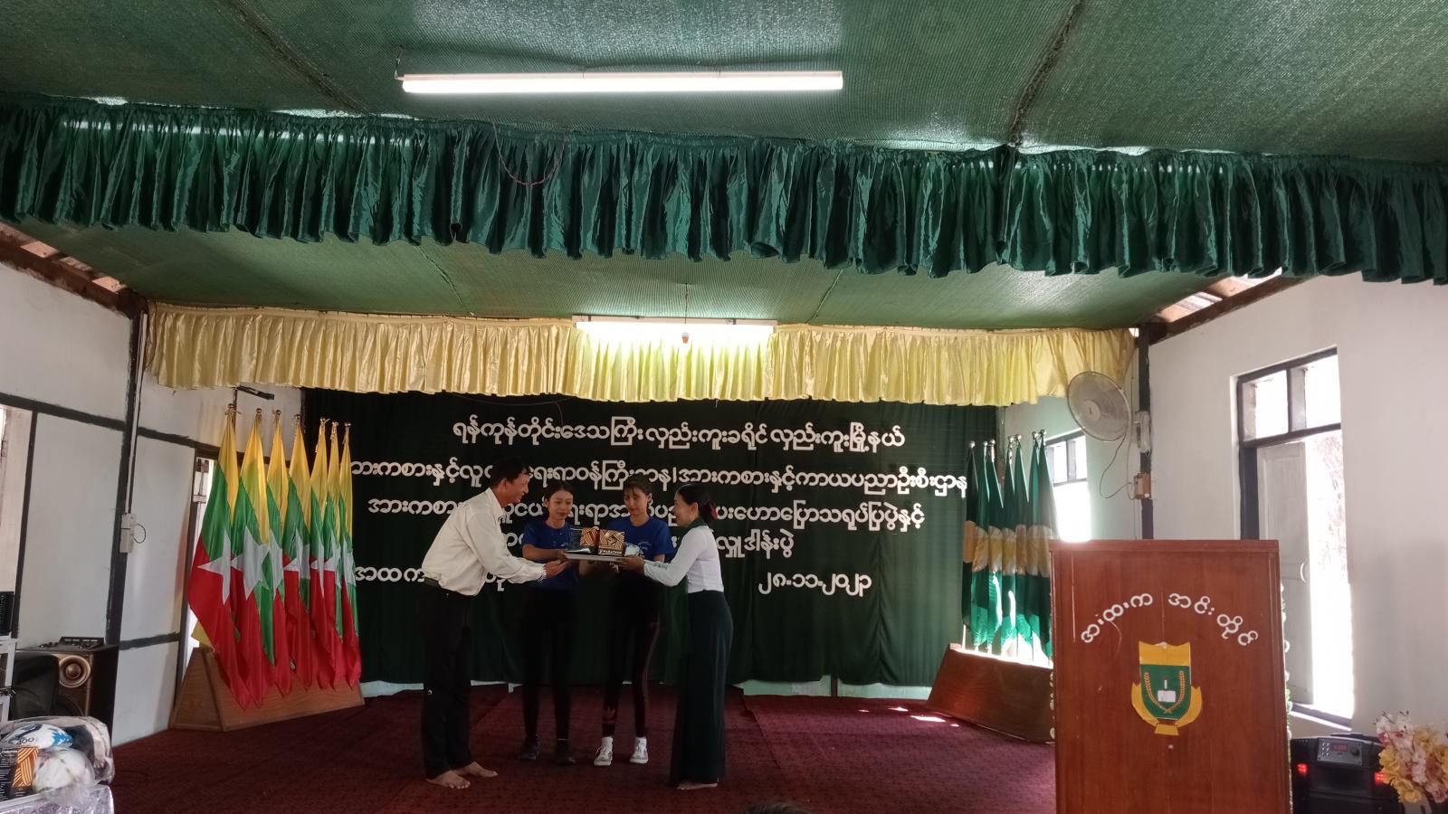 ရန်ကုန်တိုင်းဒေသကြီး၊ လှည်းကူးခရိုင်၊ လှည်းကူးမြို့နယ်တွင် အားကစားနှင့်ကာယပညာဦးစီးဌာနနှင့် အခြေခံပညာဦးစီးဌာနတို့ ပူးပေါင်းကျင်းပသော အားကစားနှင့် လူငယ်ရေးရာအသိပညာပေးဟောပြောပွဲ၊ အားကစားပစ္စည်းများ ပေးအပ်လှူဒါန်းပွဲနှင့် အားကစားသရုပ်ပြပွဲအား ယမန်နေ့ မွန်းလွဲပိုင်းက အခြေခံပညာအထက်တန်းကျောင်း (အင်းတိုင်)ခန်းမ၌ ကျင်းပသည်။