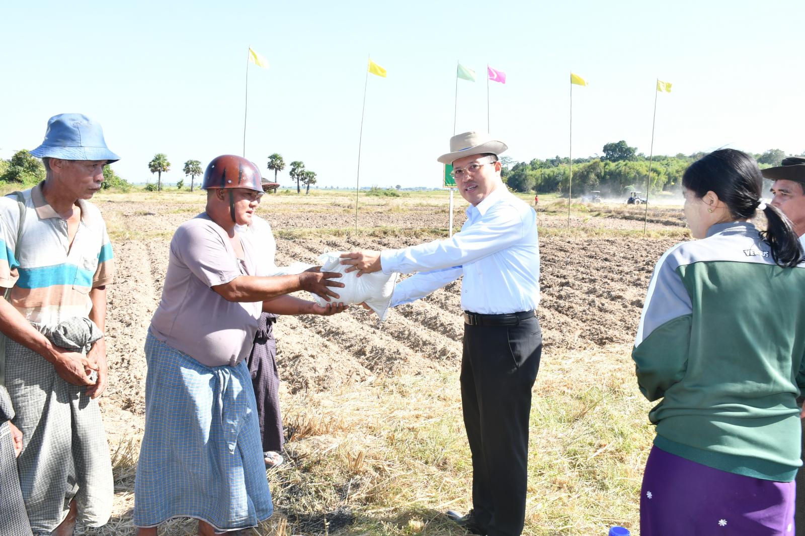 ဆက်လက်၍ တိုင်းဒေသကြီးဝန်ကြီးချုပ်နှင့် အဖွဲ့သည် ရွှေတောင်စုကျေးရွာတွင် ၂၀၂၃-၂၀၂၄ ဘဏ္ဍာနှစ် တိုင်းဒေသကြီးရန်ပုံငွေဖြင့် ဆောင်ရွက်သည့် ကွန်ကရစ်ဘီးလမ်းခင်းခြင်းလုပ်ငန်းအား ကြည့်ရှုစစ်ဆေးရာ တိုင်းဒေသကြီးကျေးလက်ဒေဖွံ့ဖြိုးတိုးတက်ရေးဦးစီးဌာန၊ ဒုတိယညွှန်ကြားရေးမှူးက လုပ်ငန်းဆောင်ရွက်ပြီးစီးမှုများအား ရှင်းလင်းတင်ပြခဲ့ပြီးနောက် တိုင်းဒေသကြီးဝန်ကြီးချုပ်နှင့် တာဝန်ရှိသူများက ကွန်ကရစ်လမ်းအား မော်တော်ယာဥ်များဖြင့် လှည့်လည်ကြည့်ရှု စစ်ဆေးခဲ့သည်။ ထို့နောက် တိုင်းဒေသကြီးဝန်ကြီးချုပ်နှင့် အဖွဲ့သည် ဟင်္သာတခရိုင်၊ လေးမျက်နှာမြို့နယ်၊ ပန်းတောကြီးကျေးရွာရှိ တောင်သူ ဦးရွှေဝင်းမောင်၏ လယ်မြေ(၂)ဧက၌ပြုလုပ်သည့် ၂၀၂၃-၂၀၂၄ခုနှစ်၊ သစ်စိမ်းမြေဩဇာ(ပိုက်ဆံလျှော်)မျိုးစေ့ထုတ်အတွက် မျိုးစေ့ပေးအပ်ပွဲနှင့် ထွန်ယက်စိုက်ပျိုးပွဲသို့ တက်ရောက်၍ တောင်သူများထံသို့ မျိုးစေ့များ ပေးအပ်ခဲ့ပြီး ပိုက်ဆံလျှော် စုပေါင်းထွန်ယက်စိုက်ပျိုးနေမှုများကို ကြည့်ရှုအားပေးခဲ့ကြောင်း သိရသည်။
