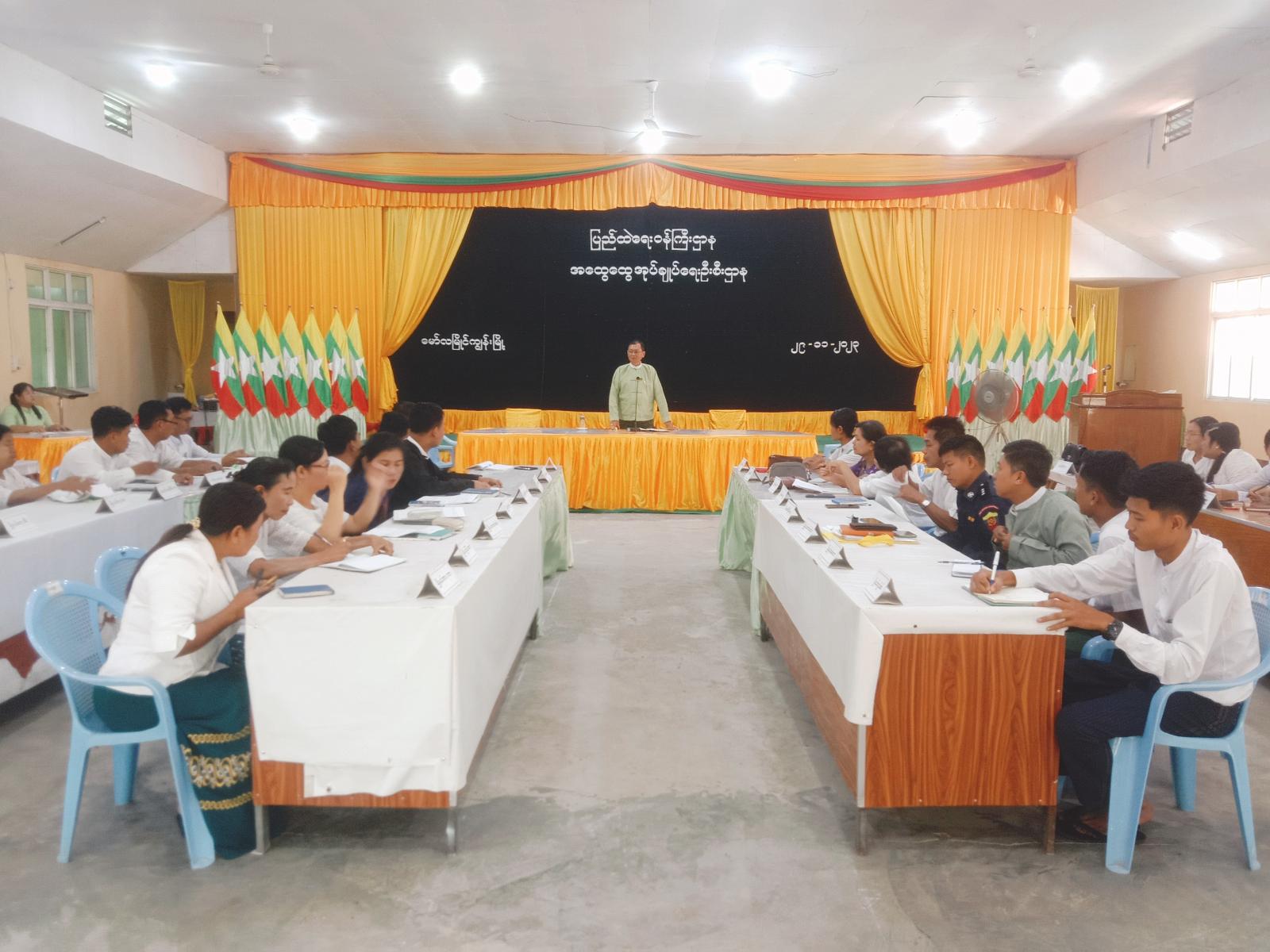 ဧရာဝတီတိုင်းဒေသကြီး၊ လပွတ္တာခရိုင်၊ မော်လမြိုင်ကျွန်းမြို့နယ်၌၂၀၂၃-၂၀၂၄ ခုနှစ် နွေစပါး၊ ဆောင်းသီးနှံ (နေကြာ)၊ သစ်စိမ်းမြေဩဇာ (ပိုက်ဆံလျှော်) လျာထားချက်ဧကပြည့်မီစွာစိုက်ပျိုးနိုင်ရေးနှင့် သီးနှံထွက်နှုန်းတိုးတက်ရေးအတွက် ကွင်းဆင်းကြီးကြပ်ဆောင်ရွက်ရန်အတွက် အစည်းအဝေးကို နိုဝင်ဘာလ ၂၉ ရက်နေ့ နံနက် (၁၀) နာရီအချိန်က အထွေထွေ အုပ်ချုပ်ရေးဦးစီးဌာန ၏ မော်ဧရာအစည်းအဝေးခန်းမ၌ ပြုလုပ်ဆောင်ရွက် ခဲ့သည်။