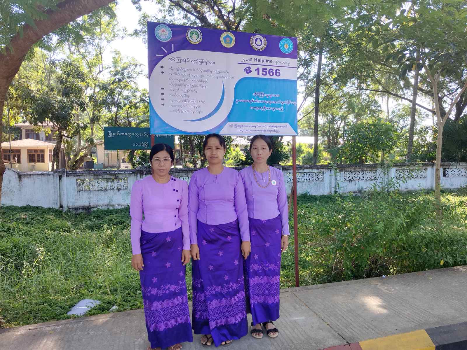 အဆိုပါဆိုင်းဘုတ်စိုက်ထူရာတွင် မြို့နယ်အမျိုးသမီးရေးရာအသင်းဥက္ကဋ္ဌ ဒေါ်အေးအေးမော်နှင့် အဖွဲ့ဝင်များက ၂၄ နာရီ Helpline ဝန်ဆောင်မှု အသိပညာပေး ပိုစတာများ စိုက်ထူခဲ့ကြကြောင်း သိရသည်။