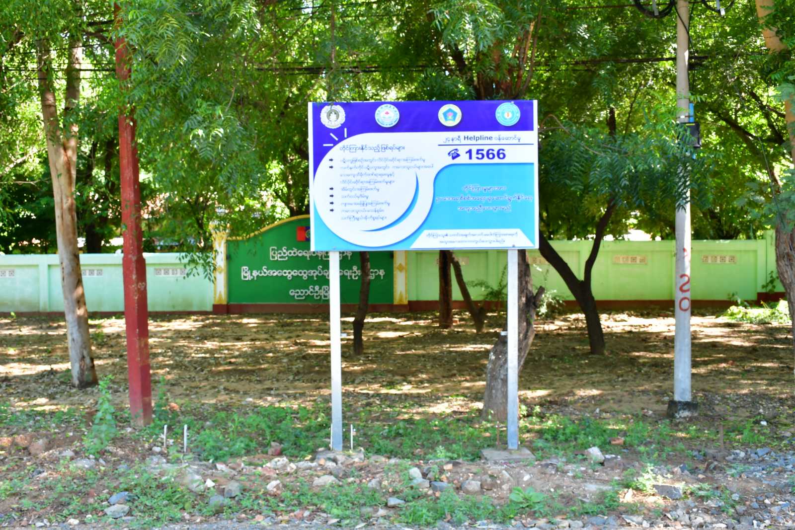 ဆိုင်းဘုတ်စိုက်ထူရာတွင် မြို့နယ်အမျိုးသမီးရေးရာအဖွဲ့ဥက္ကဋ္ဌ ဒေါ်ဇာဇာဝင့်နှင့်အဖွဲ့ဝင်များ၊ ခရိုင်လူမှုဝန်ထမ်းဦးစီးဌာန၊ ခရိုင်ဦးစီးမှူးဒေါ်မြင့်မြင့်သန်းတို့က ၂၄ နာရီ Helpline ဝန်ဆောင်မှု အသိပညာပေးပိုစတာစိုက်ထူခဲ့ကြကာ အမှတ်တရဓာတ်ပုံရိုက်ကူးခဲ့ကြောင်း သိရသည်။