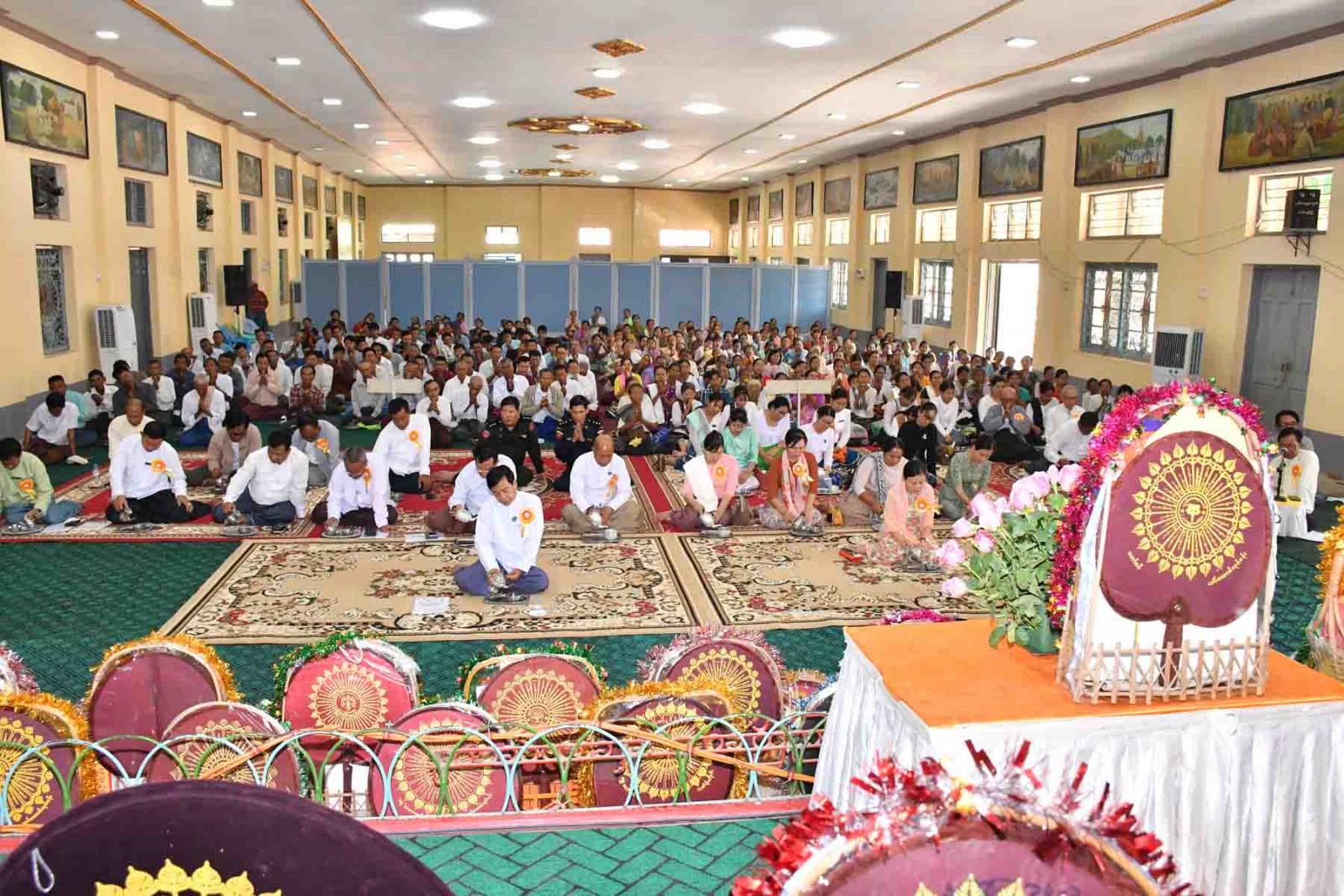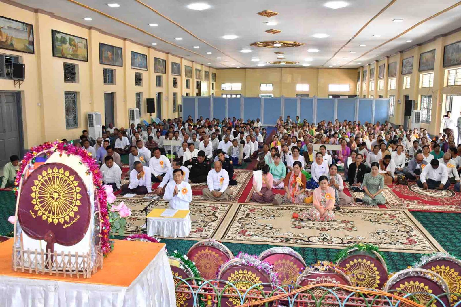 ရှေးဦးစွာ အနော်ရထာရပ်ကွက်၊ မြို့ရှေ့စန္ဒာရုံကျောင်းတိုက်ဆရာတော် အဂ္ဂမဟာပဏ္ဍိတ၊ အဘိဓဇအဂ္ဂမဟာသဒ္ဓဇောတိက၊ ဘဒ္ဒန္တစန္ဒသိရီအရှင်သူမြတ်အမှူးပြုသည့် အထူးပင့်ဆရာတော်များ၊ ကထိန်အာနိသင်ရကျောင်းတိုက်မှ ဆရာတော်များ၊ နေပြည်တော်ကောင်စီဥက္ကဋ္ဌဦးသန်းထွန်းဦးနှင့် ကောင်စီအဖွဲ့ဝင်များ၊ ဥတ္တရခရိုင် အထွေထွေအုပ်ချုပ်ရေးဦးစီးဌာနမှ ခေတ္တခရိုင်အုပ်ချုပ်ရေးမှူးဦးမင်းခိုင်ဝင်းနှင့် တာဝန်ရှိသူများ၊ မြို့နယ်စီမံအုပ်ချုပ်ရေးအဖွဲ့ဥက္ကဋ္ဌဦးညီညီထွေးနှင့် အဖွဲ့ဝင်များ၊ မြို့နယ်အဆင့်ဌာနဆိုင်ရာများ၊ စေတနာရှင်ပြည်သူများက နမောတဿသုံးကြိမ်ရွတ်ဆို ဘုရားကန်တော့၍ အခမ်းအနားဖွင့်လှစ်ခဲ့ပြီး၊ မြို့ရှေ့စန္ဒာရုံကျောင်းတိုက်ဆရာတော် အဂ္ဂမဟာပဏ္ဍိတ၊ အဘိဓဇအဂ္ဂမဟာသဒ္ဓဇောတိက၊ ဘဒ္ဒန္တစန္ဒသိရီက သာရဏီရဩဝါဒကထာချီးမြှင့်ခြင်း၊ နေပြည်တော်ကောင်စီဥက္ကဋ္ဌဦးသန်းထွန်းဦးက သာသနာရေးဆိုင်ရာများလျှောက်တင်ခြင်း၊ မဟာဘုံကထိန်ပဒေသာပင်စုပုံလှူဒါန်းရေးဦးစီးကော်မတီလုပ်ငန်းဥက္ကဋ္ဌ ဦးဇော်လွင်က ပဒေသာပင်ခွဲဝေမဲချလှူဒါန်းရေးနှင့်ပတ်သက်၍ ရှင်းလင်းလျှောက်တင်ခဲ့ပြီးနောက် ငွေတောင်တောရ ပရိယတ္တိစာသင်တိုက်မှ ဘဒ္ဒန္တဦးဇ္ဇောတကထံမှ ငါးပါးသီလခံယူ ဆောက်တည်ခဲ့သည်။