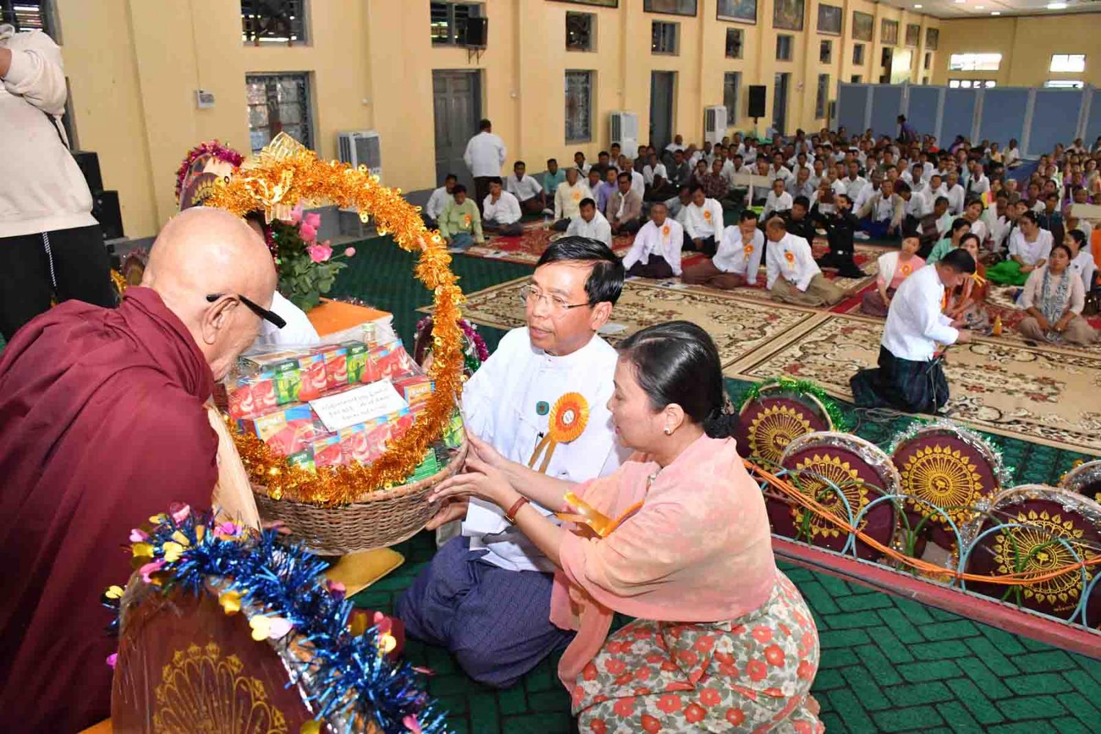 ထို့နောက် နေပြည်တော်ကောင်စီဥက္ကဋ္ဌဦးသန်းထွန်းဦးနှင့် တာဝန်ရှိသူများက အထူးပင့်ဆရာတော်ကြီးများနှင့် ကထိန်အာနိသင်ရကျောင်းများမှ ဆရာတော်ကြီးများအား လှူဖွယ်ပစ္စည်းများ ဆက်ကပ်လှူဒါန်းခဲ့ပြီးနောက် ကထိန်အာနိသင်ရကျောင်းများ၏ ကိုယ်စား အလှည့်ကျဆရာတော် ကြိုးကြာအင်းကျေးရွာ ဘုန်းတော်ကြီးကျောင်းမှ ဆရာတော်ဘဒ္ဒန္တဦးယုဘန္ဒက လှူဒါန်းမှုအစုစုအား ရေစက်ချအနုမောဒနာတရားချီးမြှင့်၍ ရေစက်သွန်းချ အမျှပေးဝေခဲ့သည်။