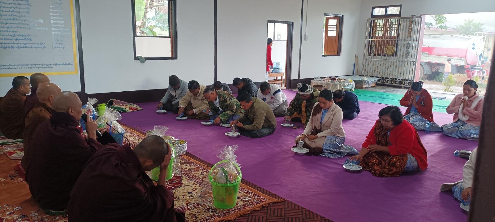 ရှေးဦးစွာ ကာလိနယ်မြေရဲစခန်း စခန်းမှူး မြတ်သော်နှင့် အဖွဲ့ဝင်များ၊ တပ်ဖွဲ့မိသားစုဝင်များ အလှူရှင်များနှင့် ဧည်သည်တော်များက ဆရာတော်၊ သံဃာတော်များအား ဖူးမြော်ကြည်ညိုပြီး အာရုံဆွမ်းများ ဆက်ကပ်လှူဒါန်းခဲ့ကြသည်။